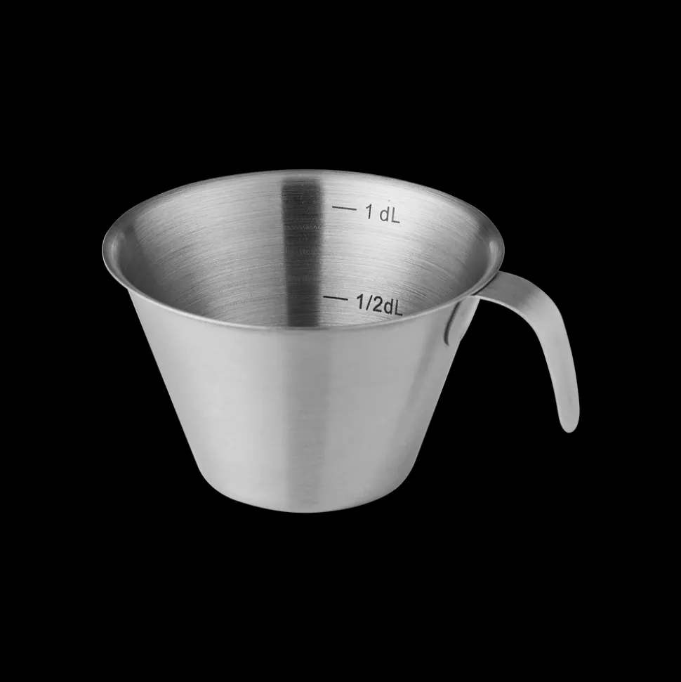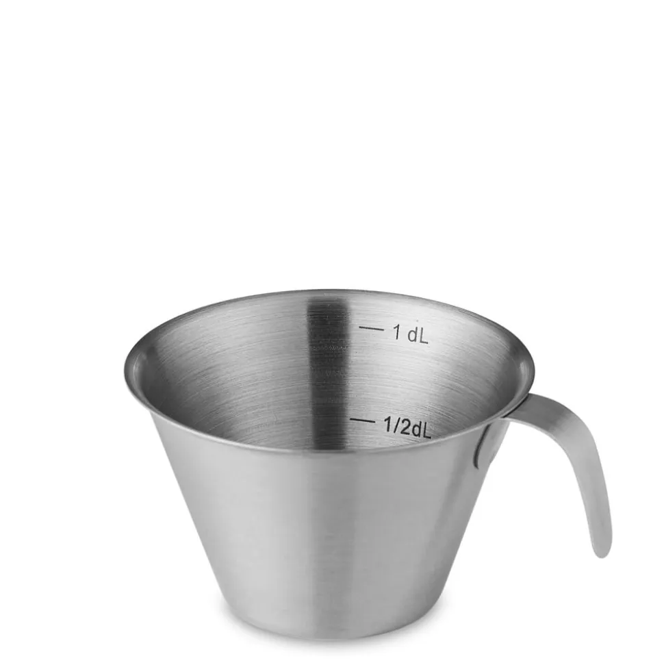 Med det klassiske decilitermål i rustfrit stål med et lille håndtag er det enkelt at afmåle præcist hver gang. Decilitermålet har indvendige markeringer på en halv og en hel deciliter og er ideelt både til væske og til tørre ingredienser. Designet er helt enkelt og let at rengøre. Et uundværligt værktøj for både professionelle og hjemmebagere. Vaskes i opvaskemaskine før første brug.