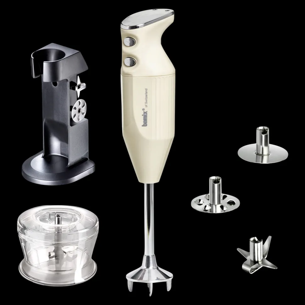 Med din bamix® Deluxe og dens tilbehør kan du piske, purere, røre, blende, mikse, male, kværne og hakke.