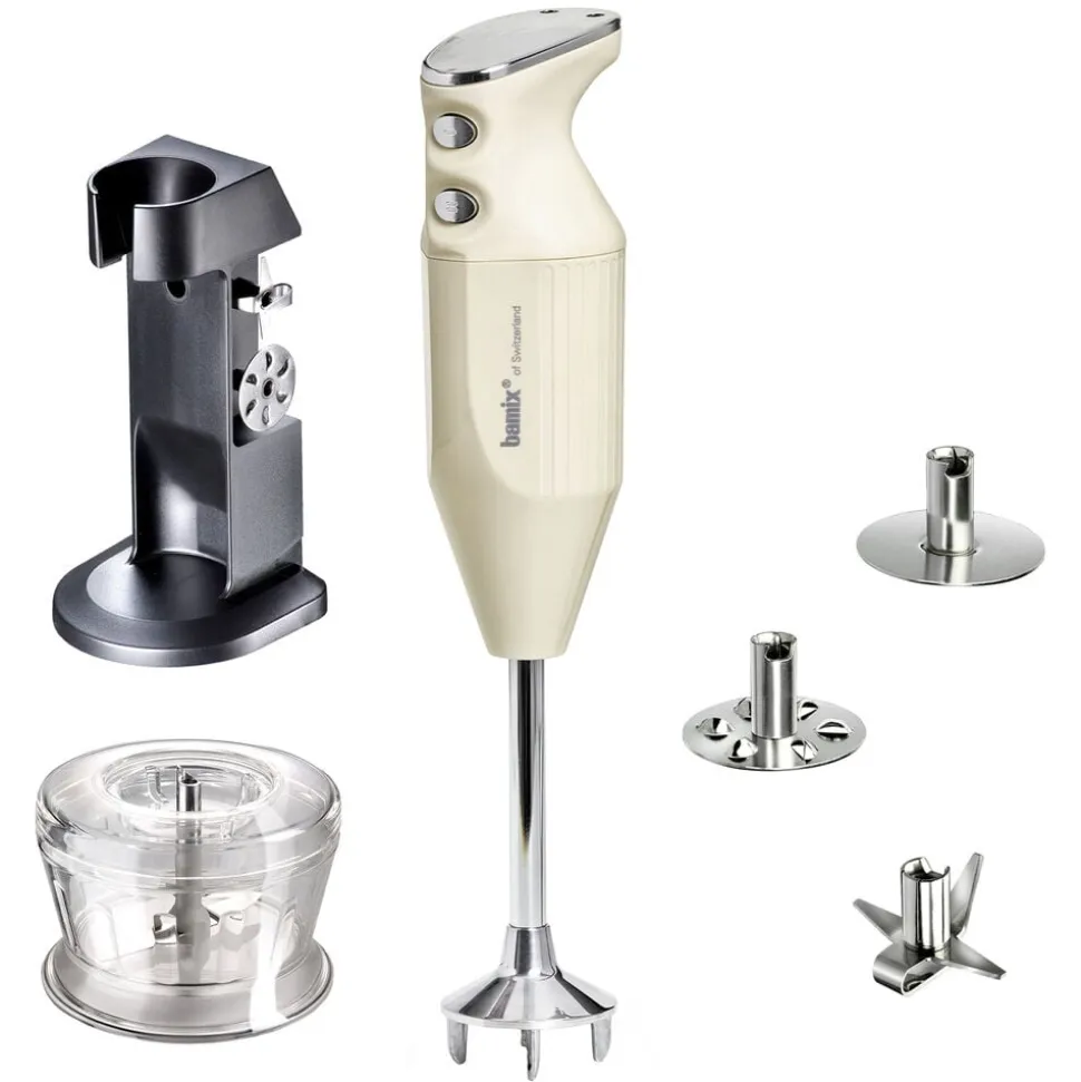 bamix® Deluxe-stavblender med en kraftig 200 watt motor, der sikrer pålidelig hjælp til selv de hårdeste opgaver i køkkenet. Stavblenderen har to hastighedsindstillinger og en praktisk ledning, der giver masser af fleksibilitet. Til produktet medfølger multifunktionskniv, blenderskive, piskeskive, kværn og bordstander samt en instruktionsmanual. Livstidsgaranti på motor.
