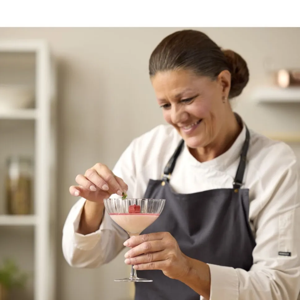 Server dine søde favoritter i et smukt dessertglas. Uanset om du serverer chokolademousse, fromage eller en trifli, er det høje glas med til at gøre din dessert ekstra indbydende. Velegnet til opvaskemaskine.