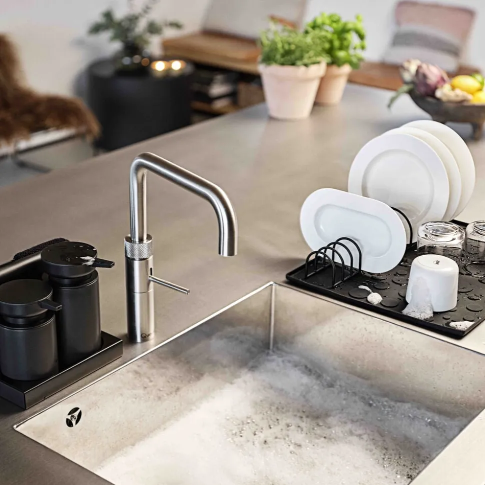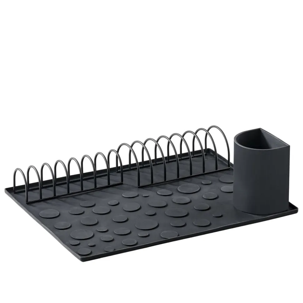 Stort design, der ikke fylder alverden. Diish opvaskebakken er en stilfuld ven ved vasken. Sættet består af en silikonebakke med boblemønster samt to tallerkenstativer, der kan lægges inden i hinanden og placeres i den medfølgende bestikholder. Dermed fylder sættet minimalt og kan let pakkes væk. Et oplagt valg til steder, hvor pladsen er knap.