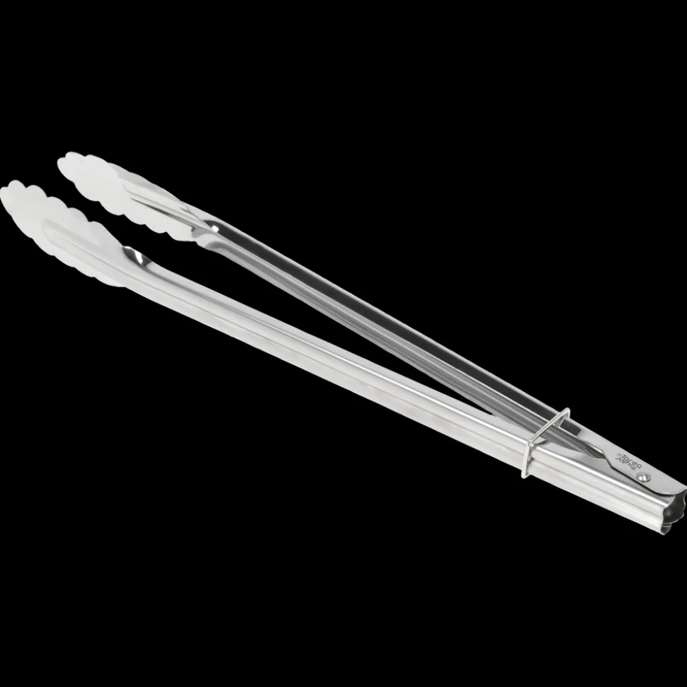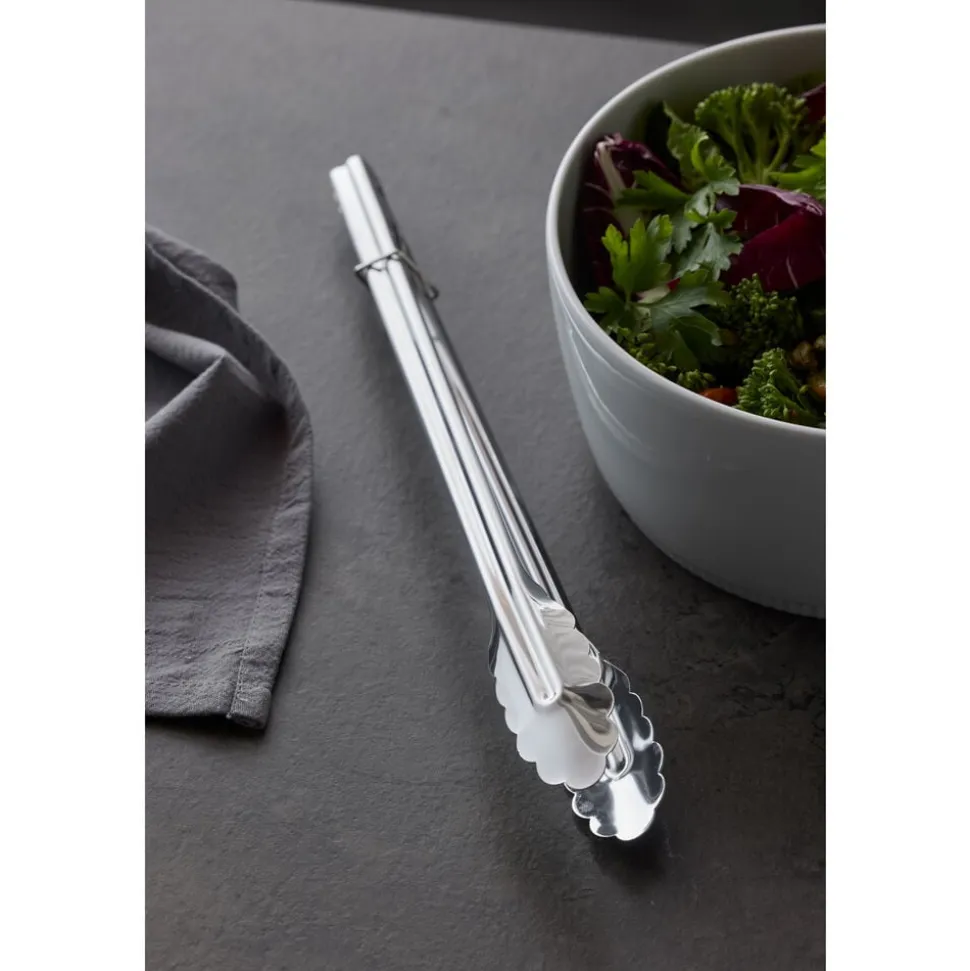 Den lange universaltang, 35,5 cm, i rustfrit stål har mange anvendelsesmuligheder. Brug den for eksempel til at løfte pasta med eller anvend den som salattang. Tangen har fjeder i toppen, og armene kan låses sammen, så tangen fylder mindre i skuffen.