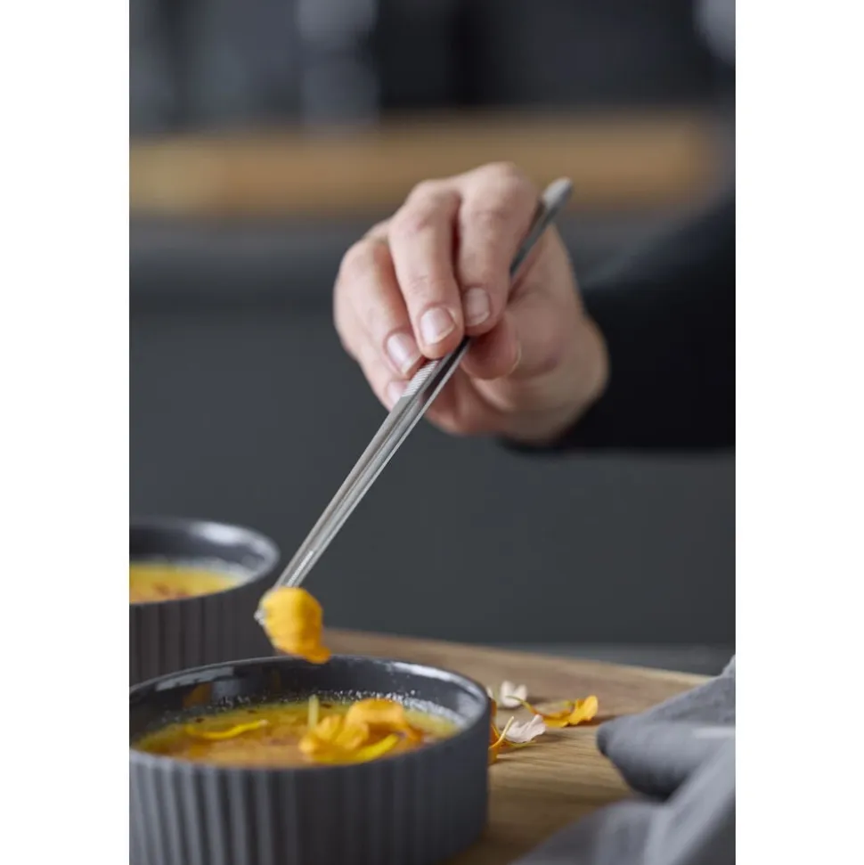 Den praktiske lille pincet af rustfrit stål er oplagt at bruge i både det søde og det salte køkken. Længden på 22 cm gør også pincetten ideel til anretning af mindre emner og dekoration af kager.