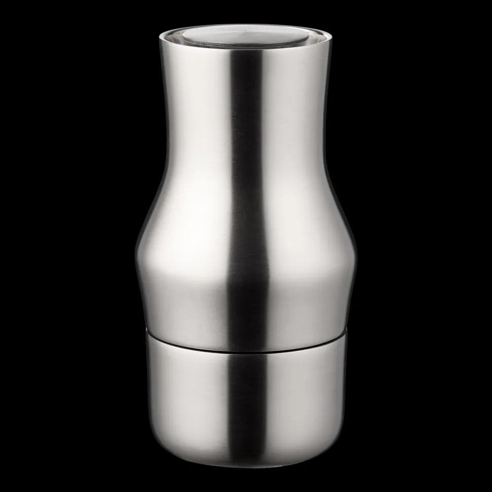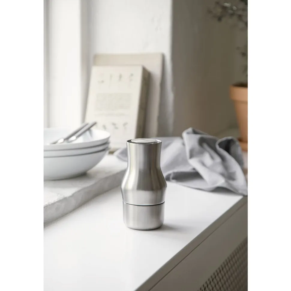 Den smukke, minimalistiske kværn med satinfinish i mat rustfrit stål bidrager til en elegant sammenhæng i borddækningen. Den keramiske CrushGrind® mekanisme er placeret i kværnens top, og på den måde sikrer det gennemtænkte design, at der ikke drysser krydderier på bordet, når kværnen sættes ned. Placeringen af kværnemekanismen giver flere fordele: tyngdekraften fører naturligt krydderierne ind i kværnen og giver en mere ensartet formaling. Samtidig ligger kværnen godt i hånden, så du har et behageligt greb og bedre kontrol. Med fire indstillinger fra fin til grov er det også nemt at justere krydringen efter forskellige præferencer.