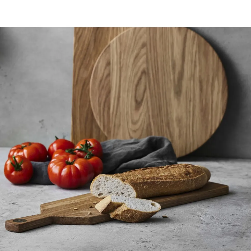 Et godt skærebræt-/serveringsbræt er uundværligt i køkkenet – og endnu bedre, når det også kan bruges til at servere på. Det har en levende struktur og en varm glød, der passer ind i ethvert køkken. Brug brættet til anretning af tapas, brød eller snacks – eller lad det stå fremme og pynte, når det ikke er i brug. Varen er produceret i FSC®-certificeret egetræ (FSC-C166612).