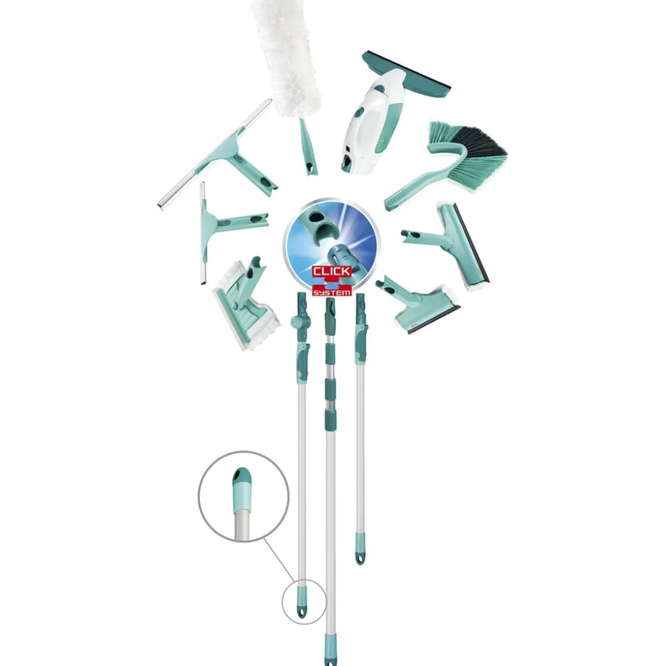 – Er en integreret del af Click systemet fra Leifheit, hvor man kan tilkøbe andre redskaber, som alle passer på den samme stang. Det gør det både smartere og billigere i længden. I denne pakke er både vinduesvasker og stang inkluderet.