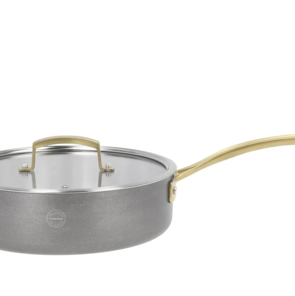 Fremstillet af 18/10 rustfrit stål med en kraftig 2,5 mm 3-lags konstruktion af rustfrit stål, aluminium og rustfrit stål. Mellemlaget af aluminium sikrer optimal varmefordeling. Pånittede støbte stålhåndtag, som er PVD-forgyldt. Ydersiden har en vintage polering. Glaslåg med damphul. Passer til alle varmekilder inkl. induktion. Håndopvask anbefales.