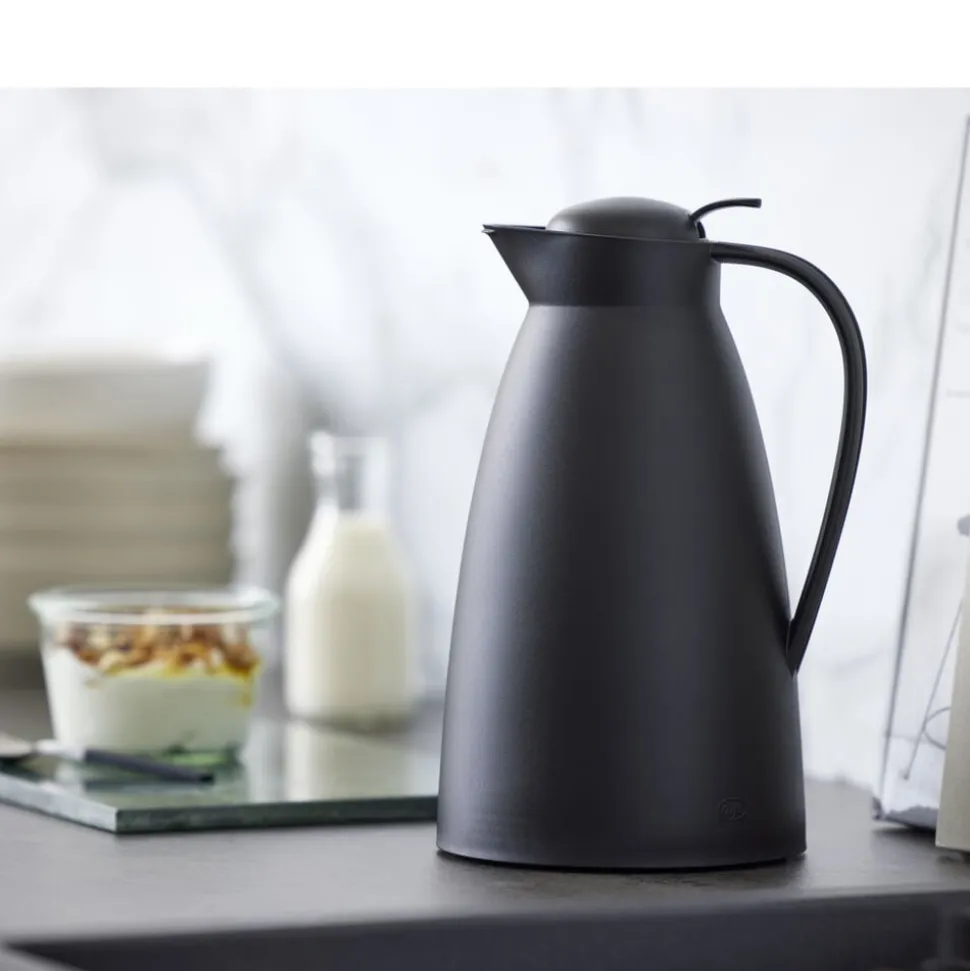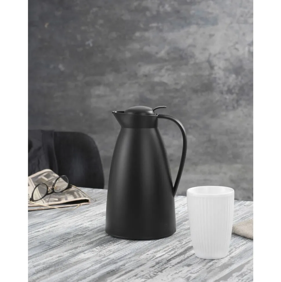 Alfi Eco kombinerer cool stil med høj funktionalitet i køkkenet og på kaffebordet. Termokande i plast i høj kvalitet. Til kaffe og te. Dobbeltvægget AlfiDur-indsats i isolerende og hærdet vakuum-glas. Unikt og praktisk hældesystem. Kan betjenes med én hånd. Holder væske varmt i 12 timer og koldt i 24 timer. Designet af Martin Hauenstein.