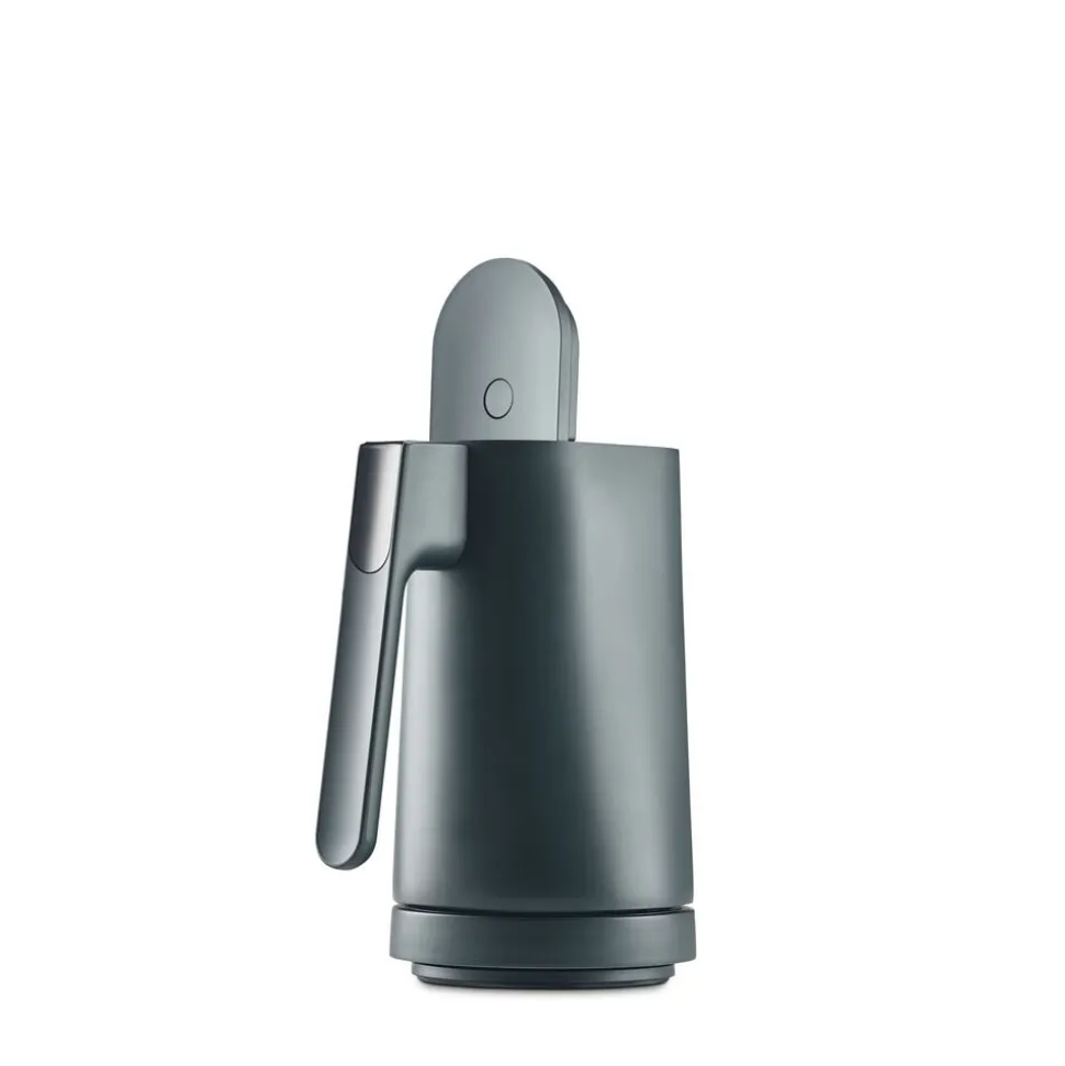 Jacob Jensen elkedel sætter en ny standard, når det gælder opvarmning af vand til din kaffe eller te. Den er fremstillet af solide materialer i en elegant form. Elkedlens display vækkes til live, når din hånd nærmer sig, og går i dvale, når kedlen ikke er i brug. Den har en kapacitet på 1,2 liter vand, og med syv forudindstillede temperaturindstillinger, der spænder fra 70 °C til 100 °C, kan temperaturen styres via touch displayet. Det digitale display gør det nemt at overvåge den aktuelle vandtemperatur, mens en blid tone signalerer, når dit vand har nået den ønskede temperatur. Derudover sikrer funktionen “Keep Warm”, at vandet bevarer den valgte temperatur, indtil kedlen fjernes fra basen.