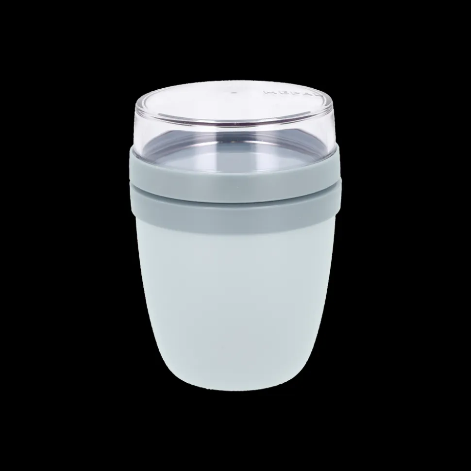 Mepal Ellipse frokostbæger Mini – til salat, yoghurt og lignende. 300 ml bæger med 120 ml topbeholder til müsli, dressing osv. – lige til at tage med. Ideel størrelse til snacks til børn. 100 % tæt og velegnet til mikroovn og opvaskemaskine.