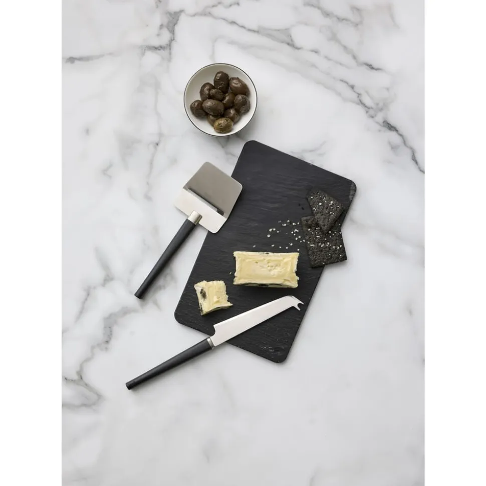Den klassiske ostehøvl egner sig til faste oste, og det brede blad med det skarpe skær håndterer nemt osteskiven, uden at du behøver at bruge fingrene.
