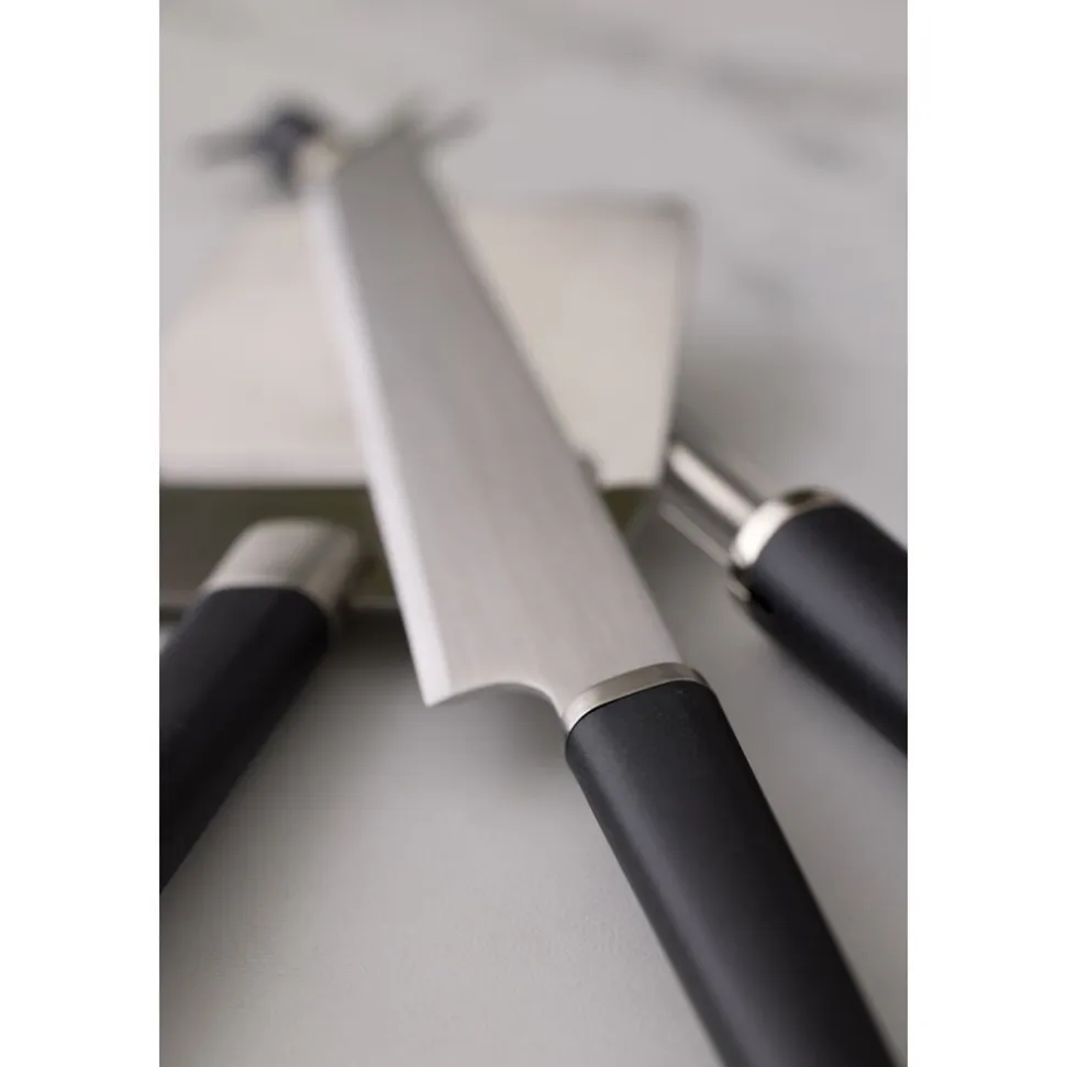De gedigne materialer, plast og rustfrit stål, komplementerer hinanden smukt og giver redskaberne en tyngde, der skaber en god balance i hånden. Det rustfri stål er af høj kvalitet, der sikrer både skarphed og nem rengøring. Redskaberne fås i en række smukke farver, der gør dem til favoritter både i køkkenet og på spisebordet. 5 års garanti.
