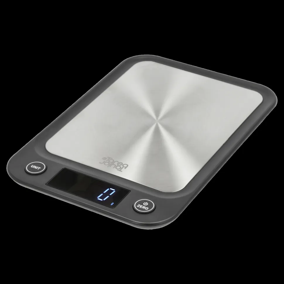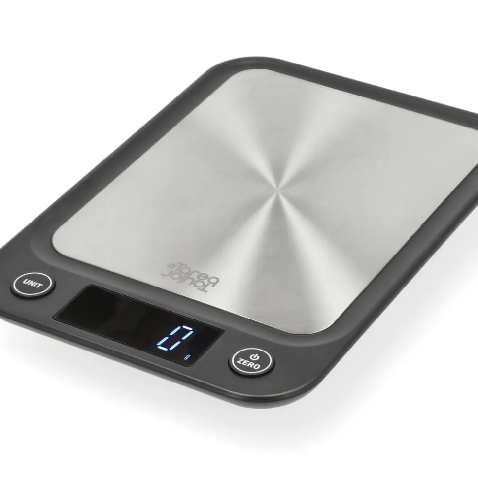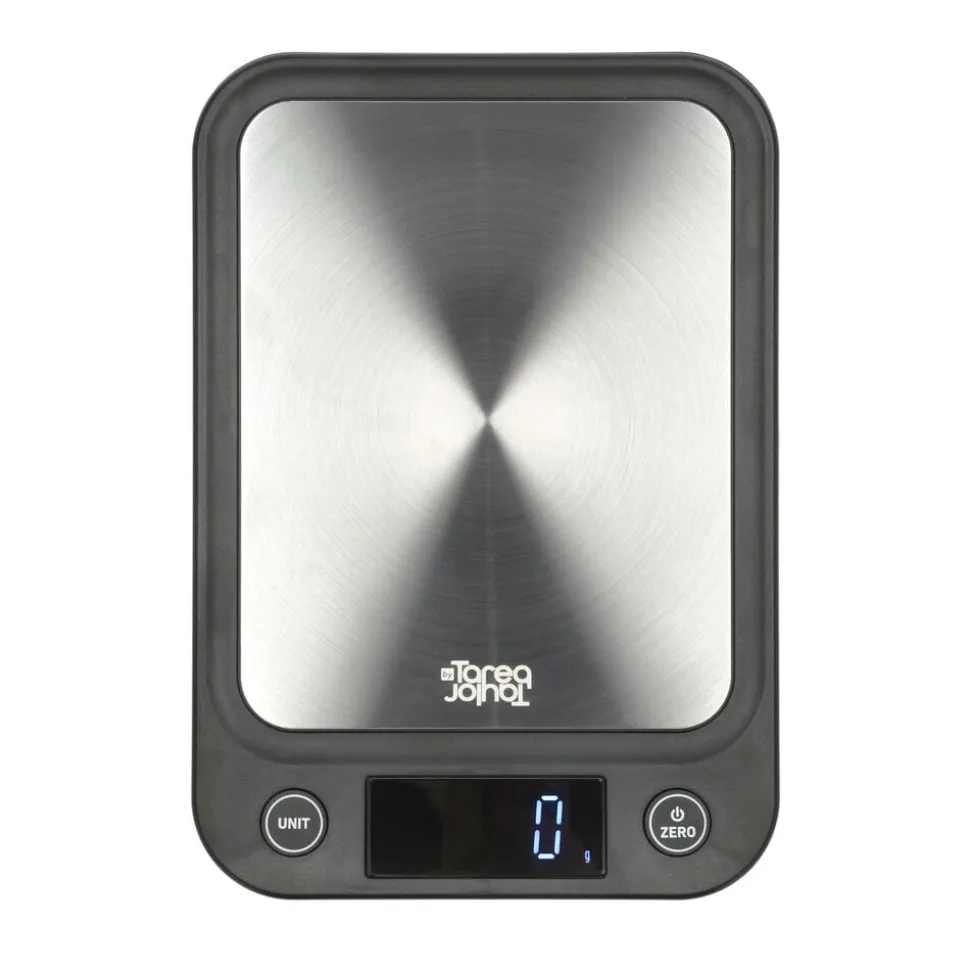 Essentials er en serie, der samler en række små, nyttige og uundværlige husholdningsapparater under en fælles æstetik. Produkter, som hver især letter køkkenarbejdet og er essentielle for at skabe lækre daglige måltider. Køkkenvægten vejer op til 5 kg og har tarafunktion. Der kan skiftes mellem enhederne g, ml, lb oz og fl oz. Vægten bruger tre 1,5V AAA batterier, som ikke medfølger.