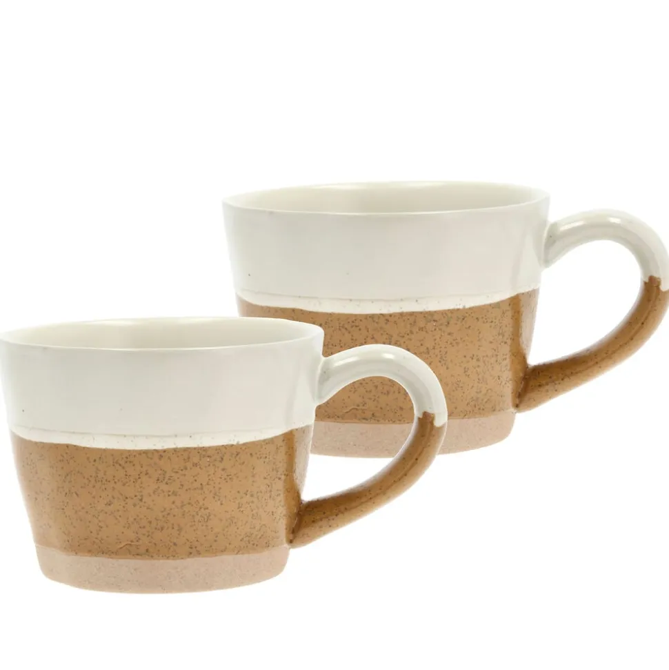 2 porcelænskrus med hank, 30 cl, med en smuk, reaktiv glasur. De har et fantastisk udseende med en unik overflade, da hvert enkelt produkt er hånddekoreret, og derfor kan farve og overflade variere. D 14 cm, H 7,3 cm.