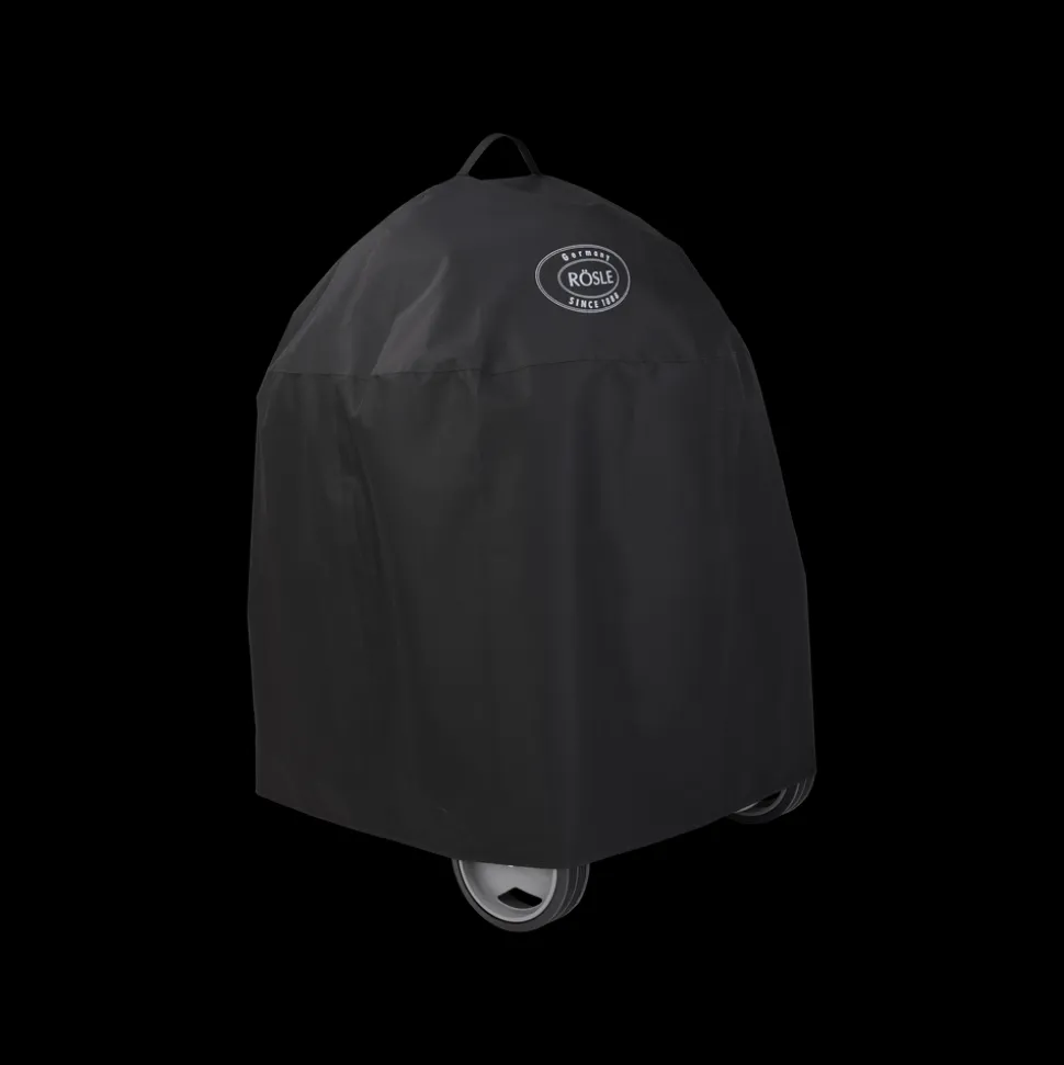 Det sorte, vandtætte grillcover er designet til at passe til Rösles kulgrill No.1 F50 Air. Coveret har velcrolukning til fastgørelse på grillrammen.