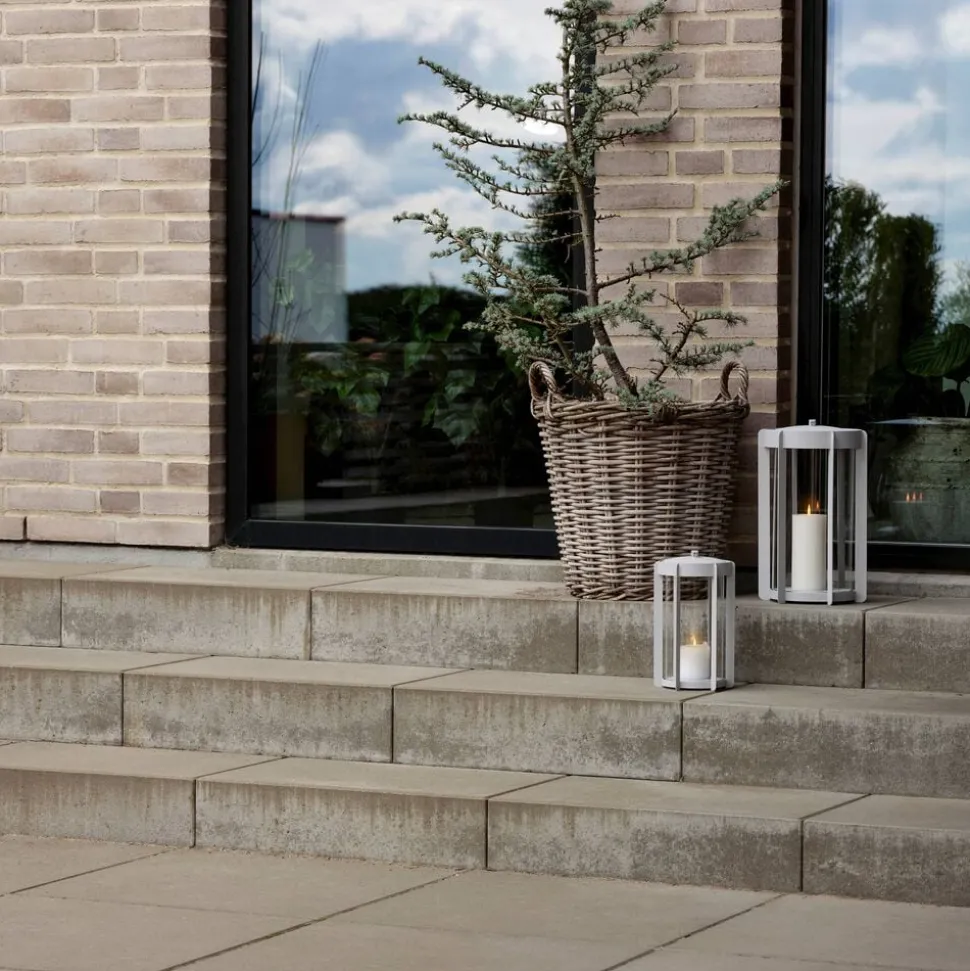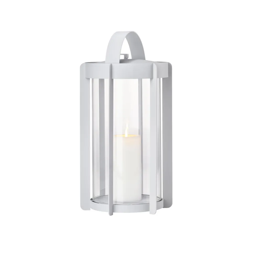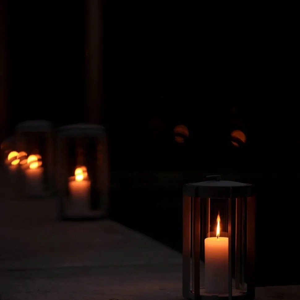 Firefly-lanternerne med glassider findes i to højder, hhv. 25 og 35 cm og er udført i pulverlakeret stål. Topstykket er let at løfte af, når et nyt lys skal sættes i. Du vipper bare den lille silikonestrop op, og lægger den ned igen, når lyset er skiftet. Der er noget tidløst over udtrykket, og designinspirationen er da også hentet flere hundrede år tilbage, hvor datidens vogtere gik med lanterner gennem byerne. Her er en moderne version, der er klar til at kaste hyggelys på terrasser og altaner, når tusmørket melder sig.