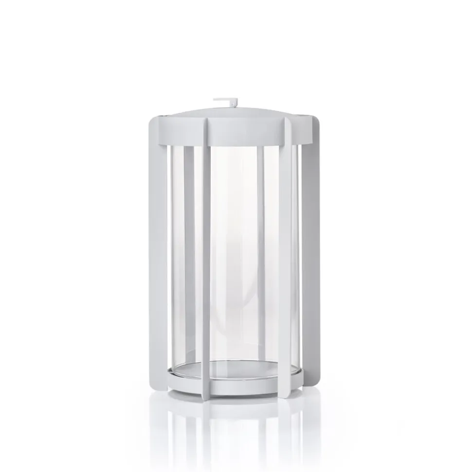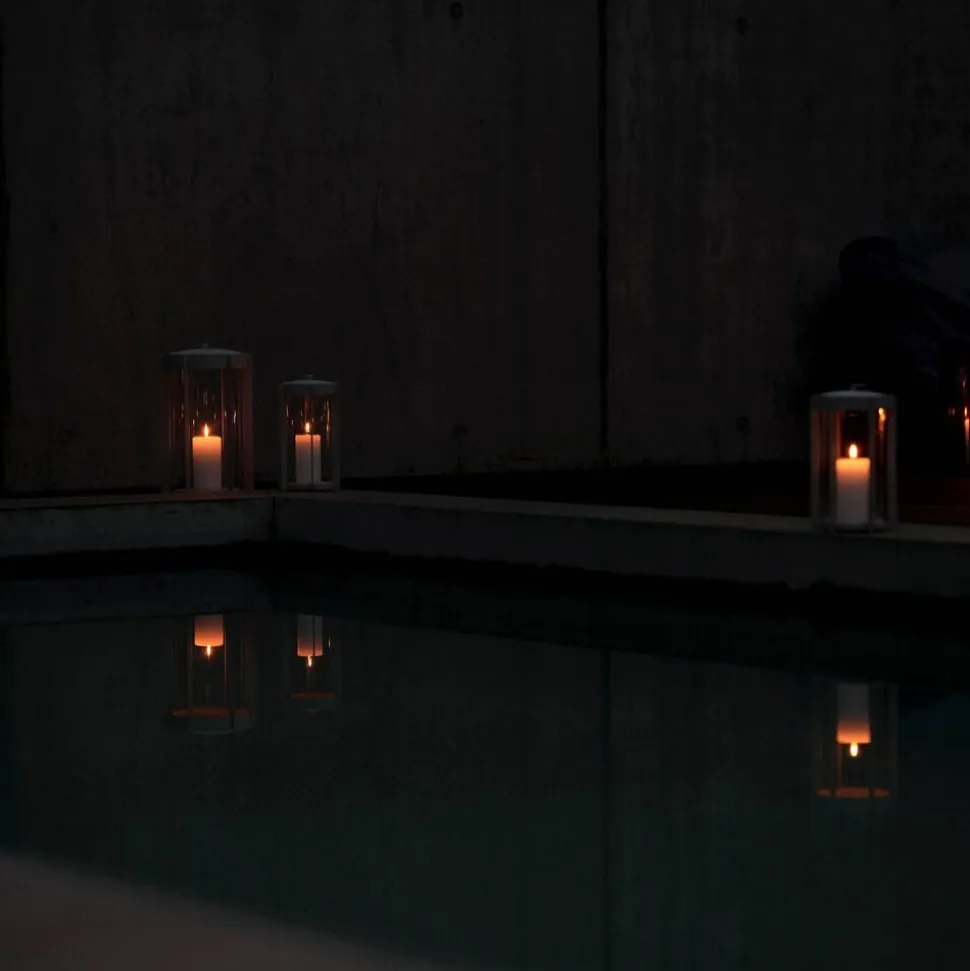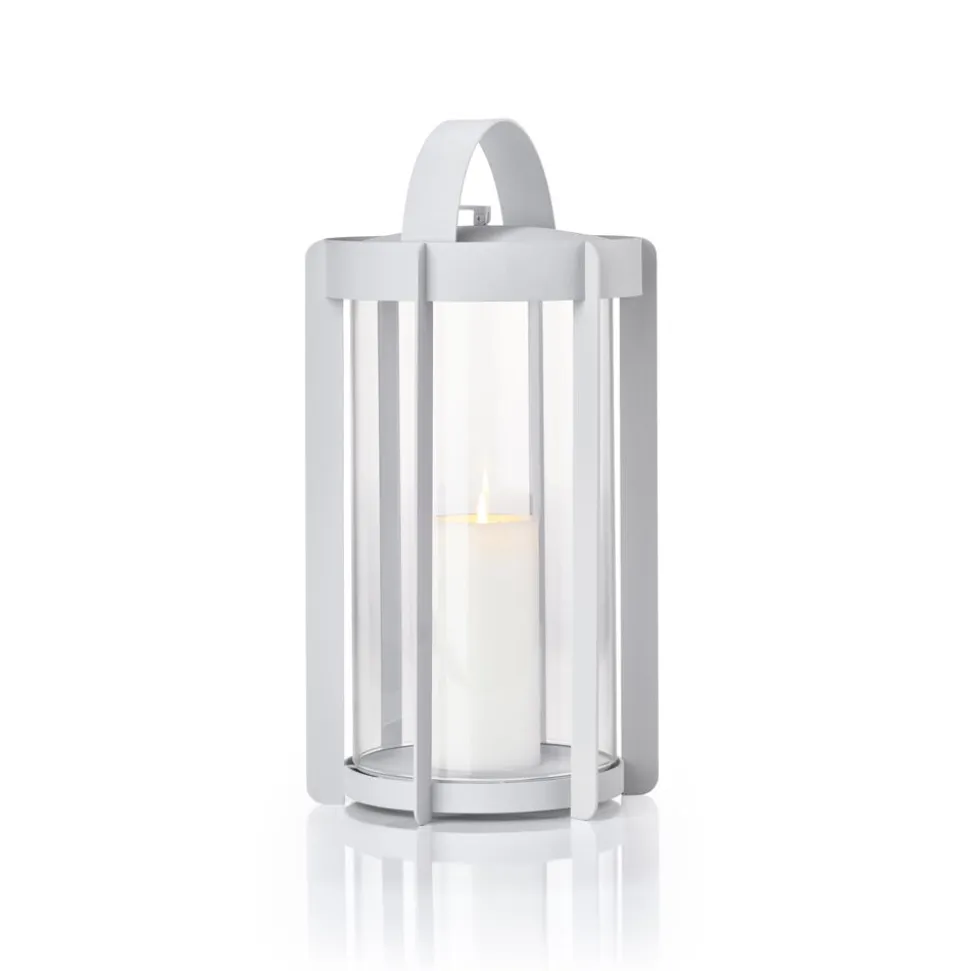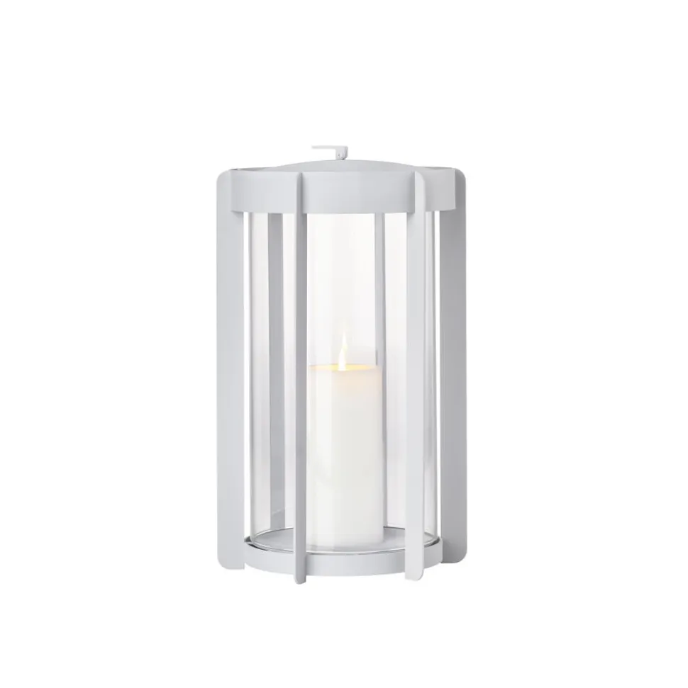 Firefly-lanternerne med glassider findes i to højder, hhv. 25 og 35 cm og er udført i pulverlakeret stål. Topstykket er let at løfte af, når et nyt lys skal sættes i. Du vipper bare den lille silikonestrop op, og lægger den ned igen, når lyset er skiftet. Der er noget tidløst over udtrykket, og designinspirationen er da også hentet flere hundrede år tilbage, hvor datidens vogtere gik med lanterner gennem byerne. Her er en moderne version, der er klar til at kaste hyggelys på terrasser og altaner, når tusmørket melder sig.