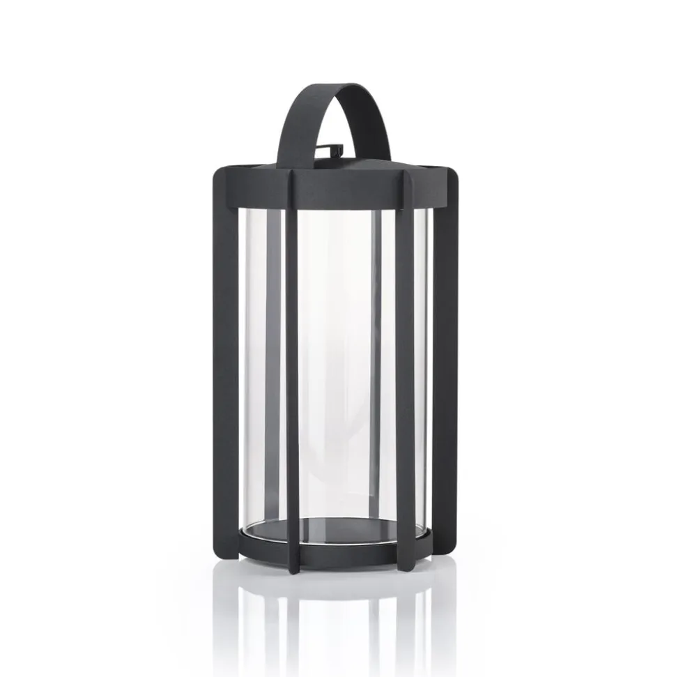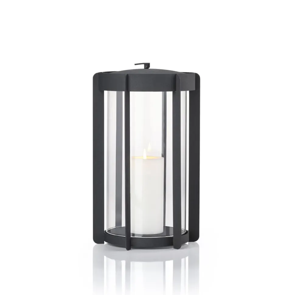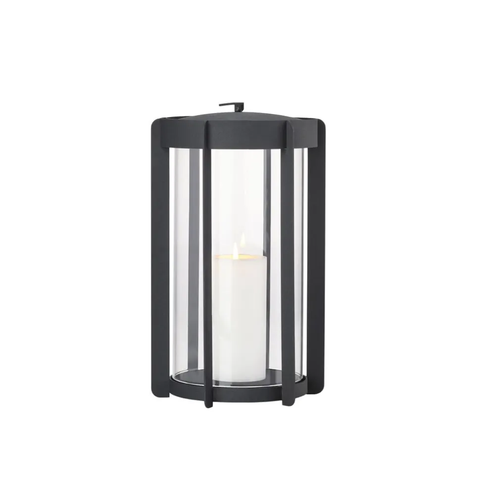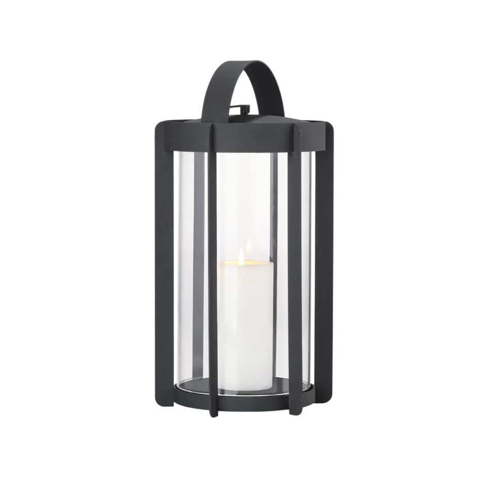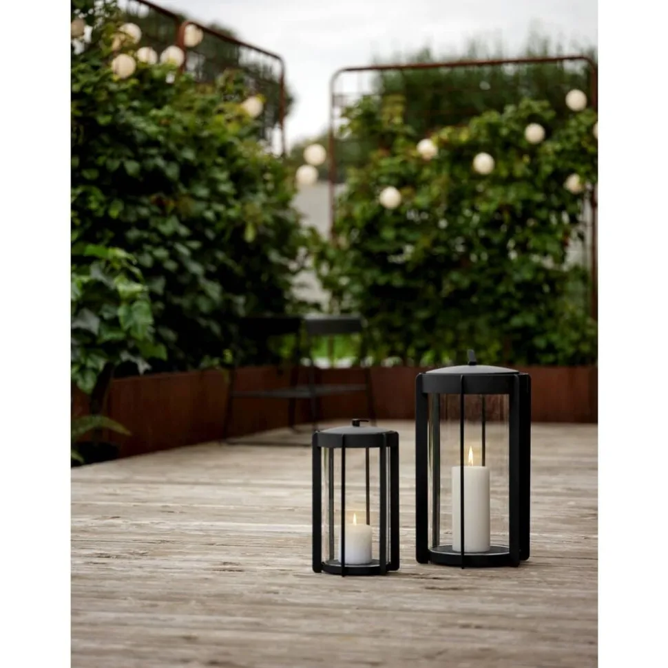 Firefly-lanternerne med glassider findes i to højder, hhv. 25 og 35 cm og er udført i pulverlakeret stål. Topstykket er let at løfte af, når et nyt lys skal sættes i. Du vipper bare den lille silikonestrop op, og lægger den ned igen, når lyset er skiftet. Der er noget tidløst over udtrykket, og designinspirationen er da også hentet flere hundrede år tilbage, hvor datidens vogtere gik med lanterner gennem byerne. Her er en moderne version, der er klar til at kaste hyggelys på terrasser og altaner, når tusmørket melder sig.
