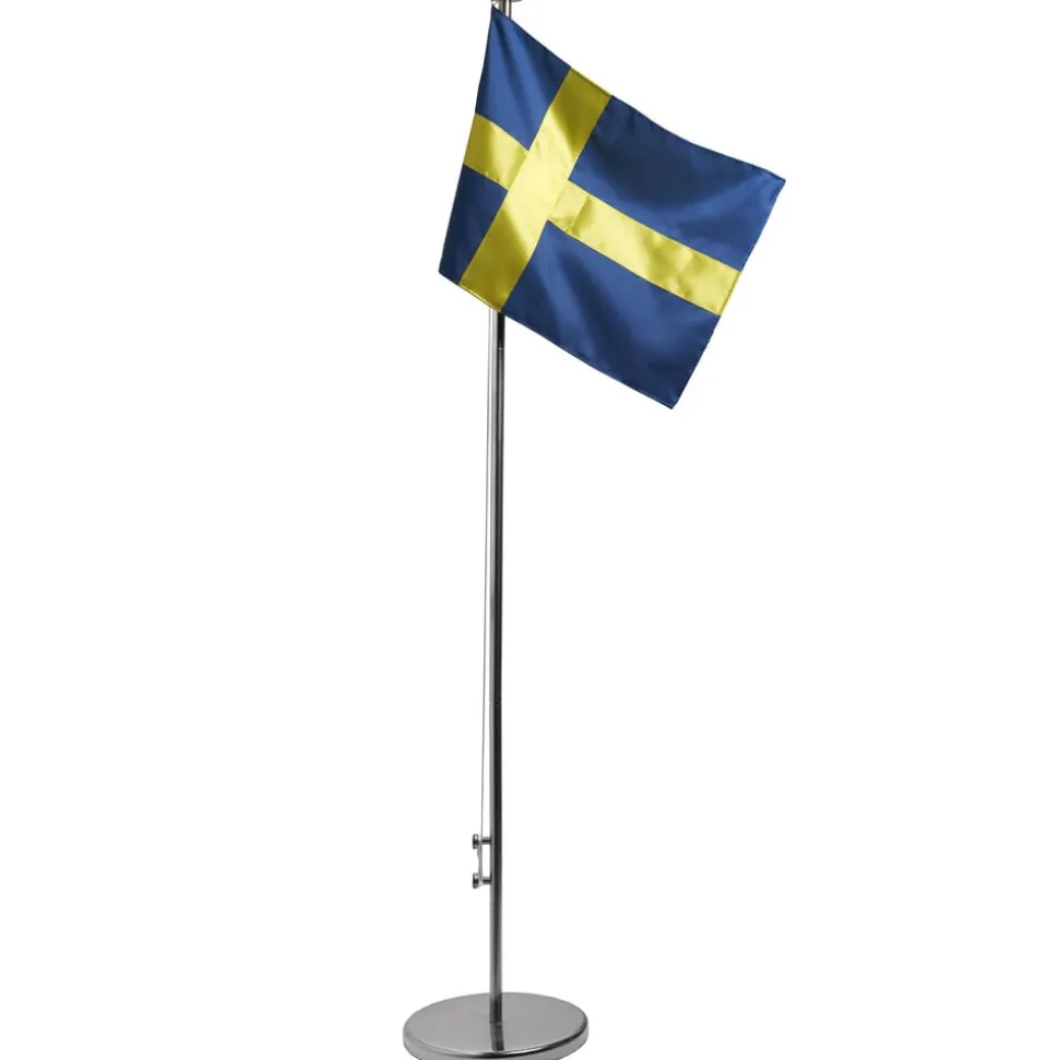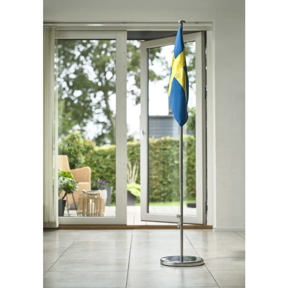 Sæt flaget frem, så alle kan se, at der er noget at fejre. Den 165 cm høje flagstang er fremstillet i rustfrit stål og har et svensk flag i polyester, der måler 55 x 40 cm. Basen har en diameter på 27 cm og er ligesom selve stangen fremstillet af rustfrit stål.