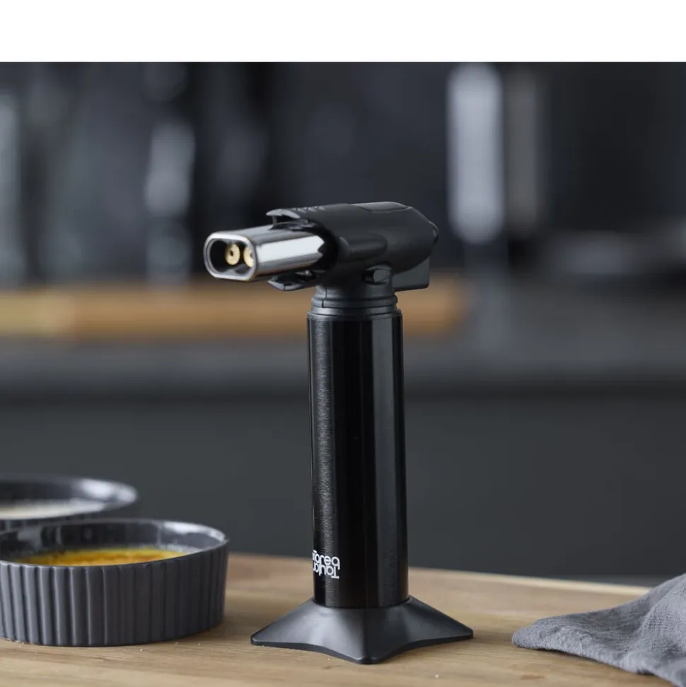 Gasbrænderen Flame med dobbelt flamme bliver hurtigt køkkenfavoritten , der hjælper dig til den perfekte skorpe på alt fra crème brûlée, marengs og smeltet ost til frisk fisk og grillede grøntsager. Brænderen har kraftig og stabil dobbeltflamme, der kan justeres i intensitet og låses, støttefod og 27 ml gasbeholder, der kan genfyldes.