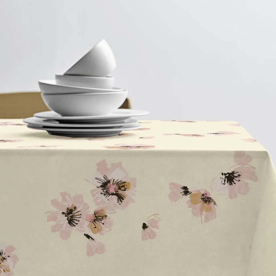 Skab et kunstnerisk og iøjnefaldende udtryk med Flora, et dristigt blomstermønster skabt af udtryksfulde penselstrøg. Dugen gør borddækningen livlig og stilfuld med den unikke kombination af smukke blomster og skønne farver.