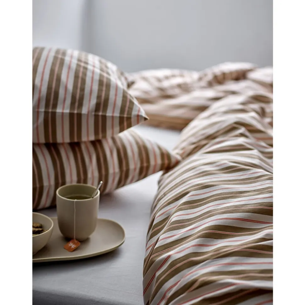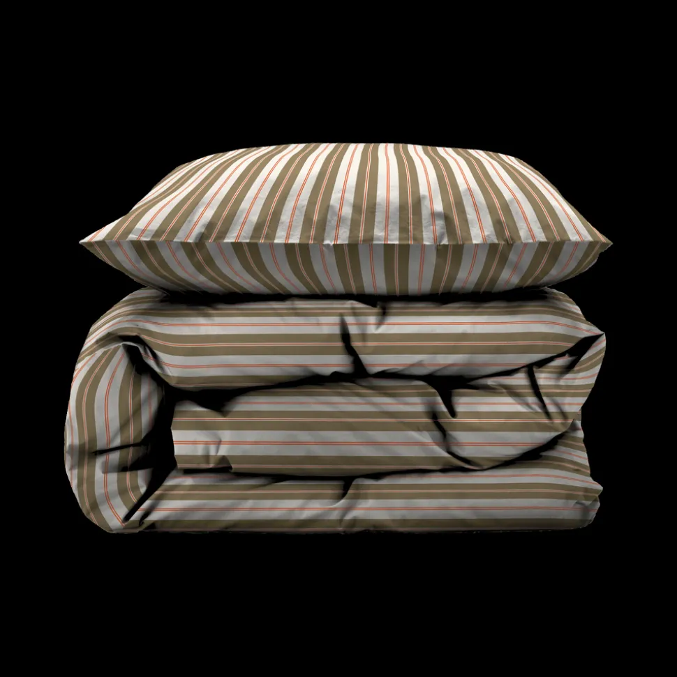 Flow tilfører soveværelset elegance og rytme med sit fine grafiske stribemønster. Både layout og farvekombinationer er identiske på for- og bagside af sengesættet, hvilket giver et harmonisk og afbalanceret udtryk. Fremstillet i 100 % bomuld i en åndbar lærredsvævning.