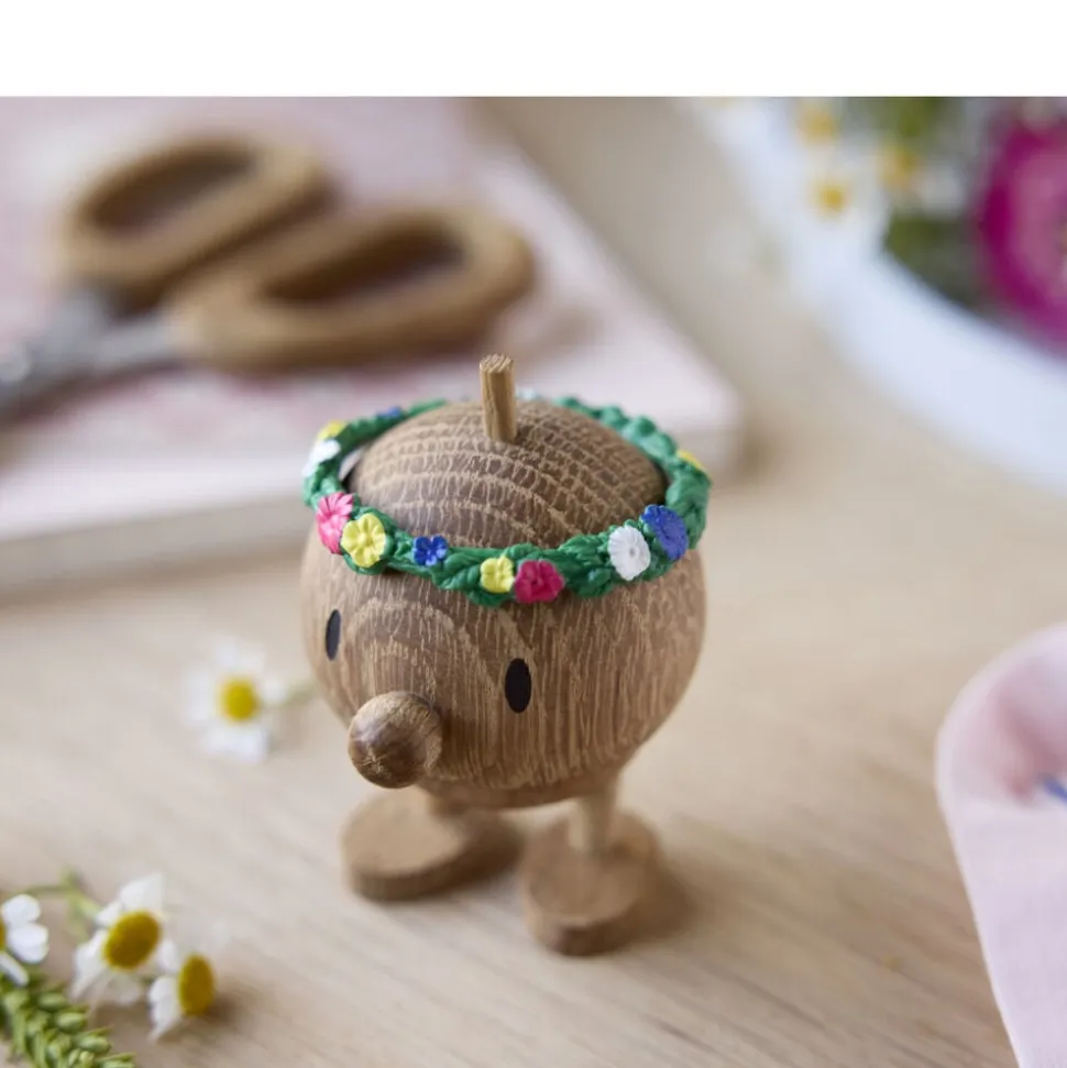 Flower Bumble er en lille humørspreder med blomsterkrans på hovedet og godt humør i kroppen. Han elsker forår, farver og festlige dage, og han hopper gerne rundt og spreder solskin, selv når det regner. Perfekt på hylden, i vindueskarmen eller som en gave til én, der trænger til lidt ekstra glæde i hverdagen.