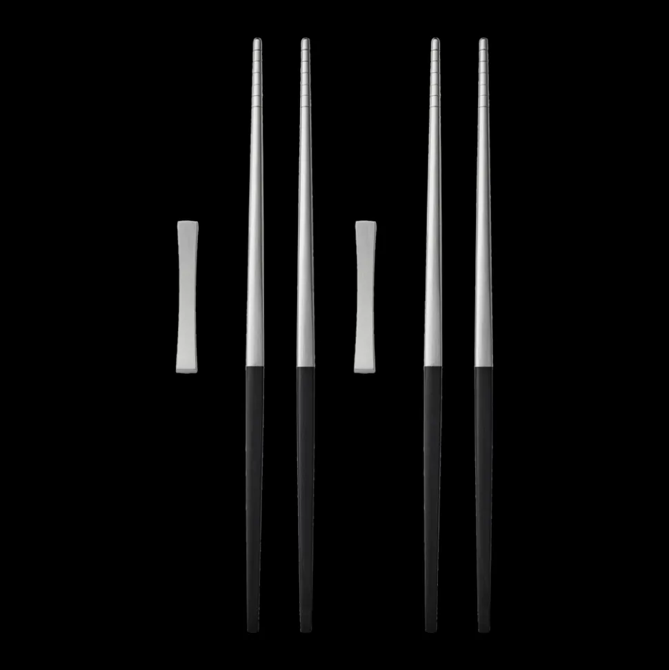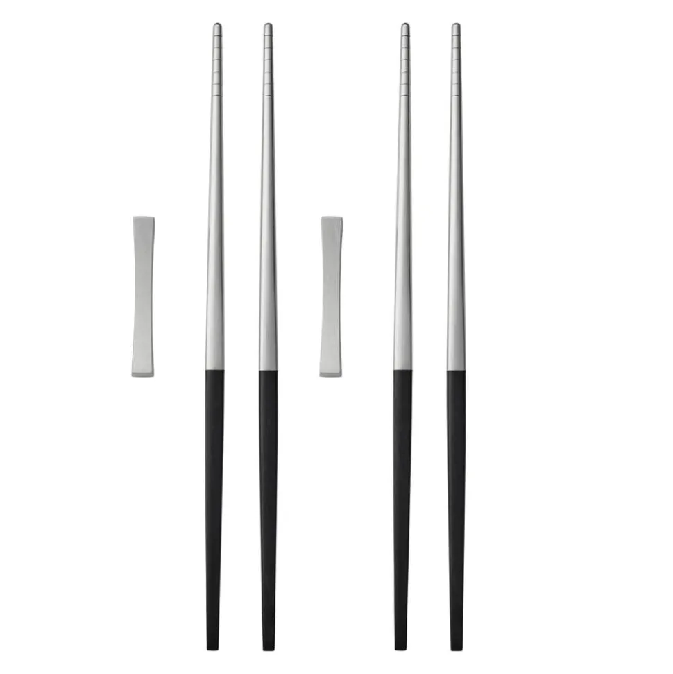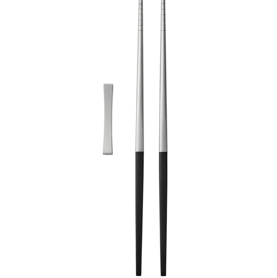 Focus de Luxes spisepinde har de samme stramme og tidløse linjer som Focus de Luxe bestikket. Designet er inspireret af koreanske spisepinde og er udviklet i samråd med koreansk ekspertise. Spisepindene er fremstillet i matpoleret rustfrit stål med en riflet overflade for at gøre det nemmere at fange maden og skafter i sort plast. Formen går fra at være elegant firkantet øverst til at blive rund nederst. Tåler opvaskemaskine, max. 55 °C.