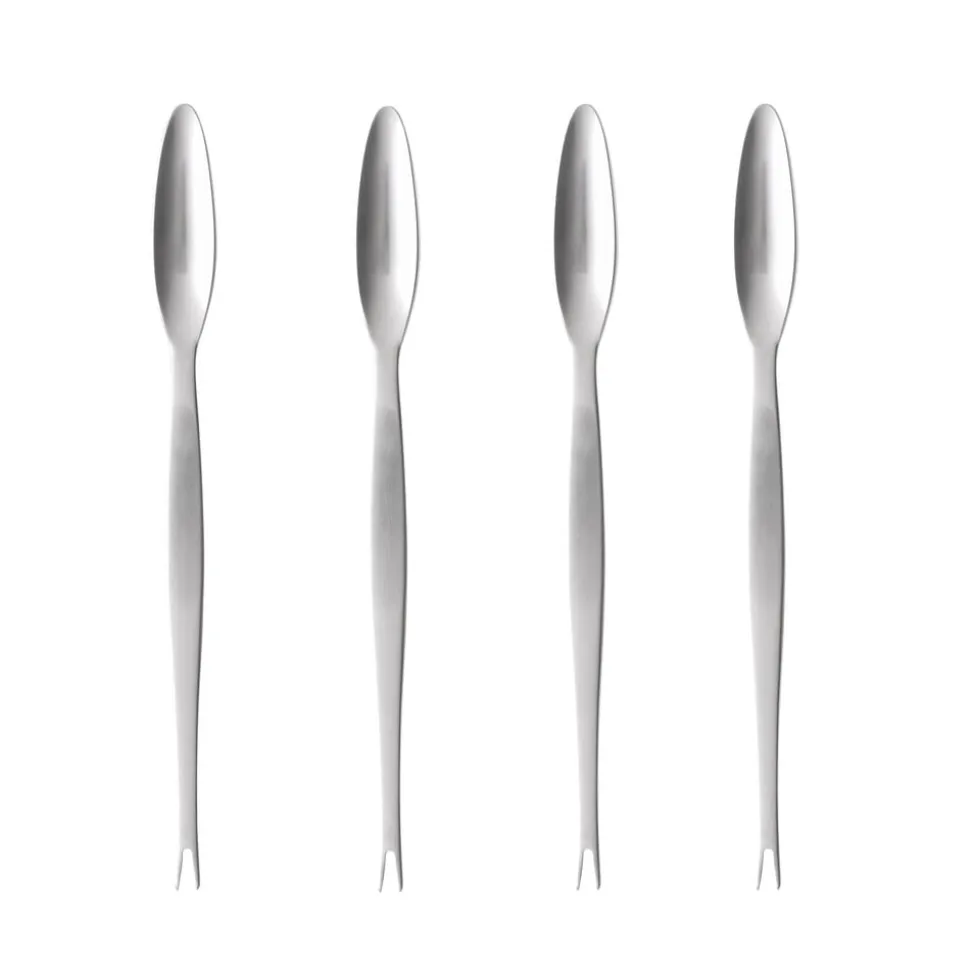 En klassisk skaldyrsgaffel med to tænder og ske i den anden ende, der gør det nemt at pille skaldyrskødet ud af kløer m.m. Tåler opvaskemaskine.