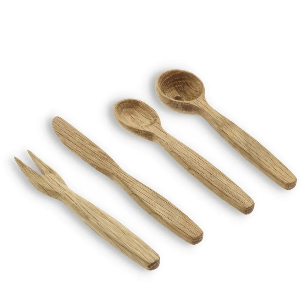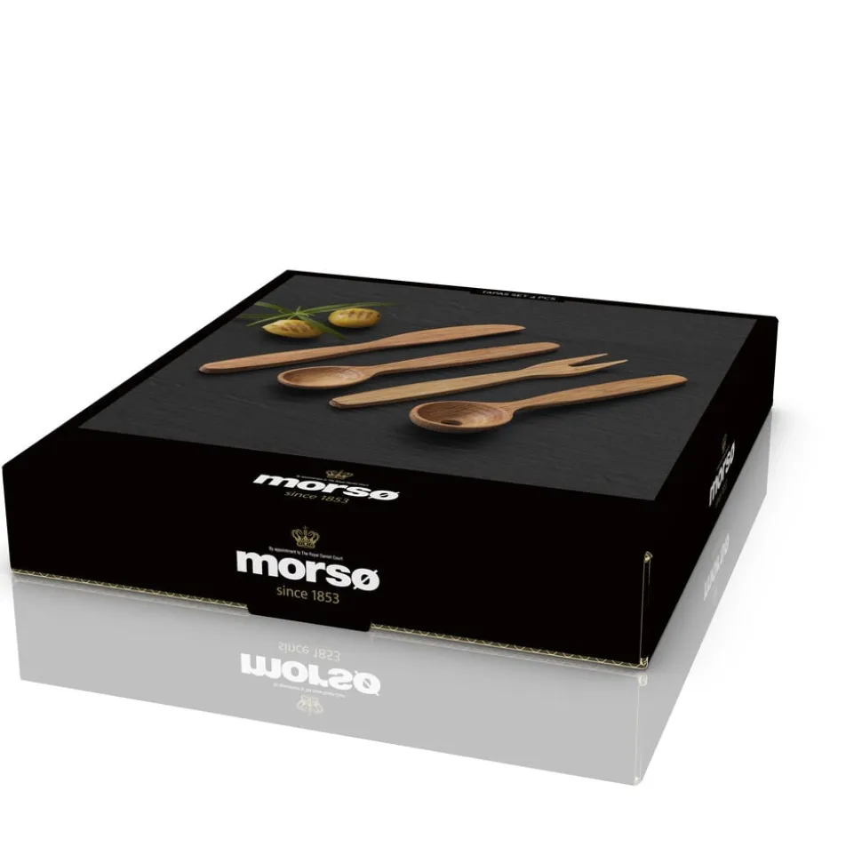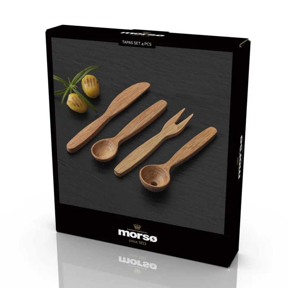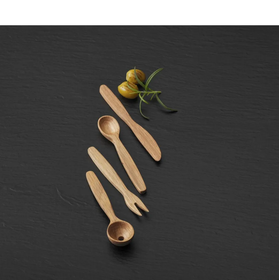 Med det stilfulde tapassæt er der lagt op til lækre hyggestunder med venner og familie. Sættet består af en olivenske, en almindelig ske og en smart gaffel, alle 14 cm, og en kniv på 16 cm.