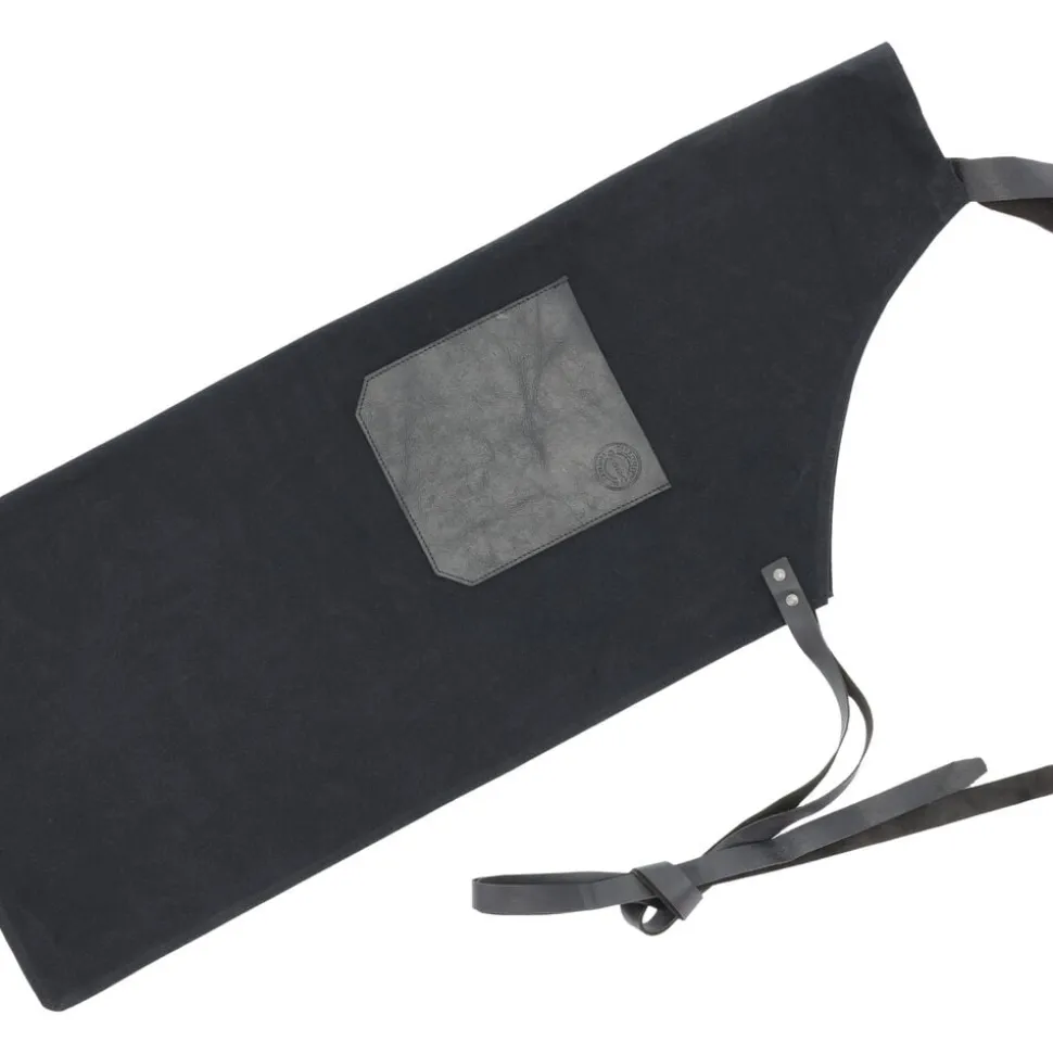Sort kvalitetsforklæde i vokset kanvas med læderdetaljer. Kanvas er 100 % bomuldsstof i en kraftig vævning. Det er slidstærkt og vandafvisende, hvilket gør det egnet til hverdagsbrug. Det kan let rengøres med en fugtig klud. Læderet er 100 % bøffellæder. Bøffellæder er slidstærkt og har stor elasticitet. Med passende pleje vil bøffellæder holde i lang tid og få patina, som fremhæver læderets skønhed. Forklædet har en praktisk lomme og en strop, hvor viskestykket kan hænge, imens du laver mad. Forklædet kan justeres, så det passer til din højde.