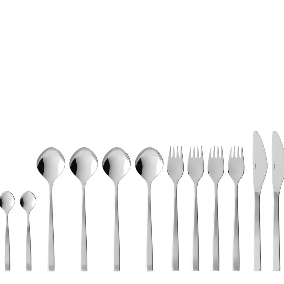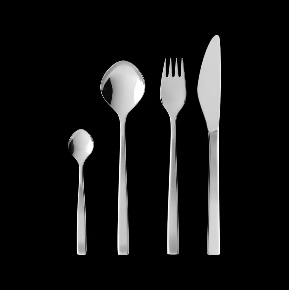 Gense Fuga har et klassisk design med blødt afrundede linjer, der hviler behageligt i hånden, og en raffineret kontrast i de matte skafter og blankpolerede hoveder. Tias Eckhoff formgav i 1962 det ikoniske bestik, der i sit design formidler klarhed og præcision, men med et subtilt udtryk.