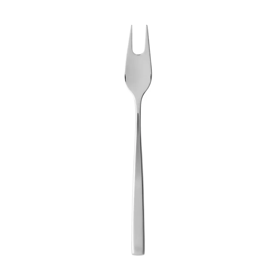 Gense Fuga har et klassisk design med blødt afrundede linjer, der hviler behageligt i hånden, og en raffineret kontrast i de matte skafter og blankpolerede hoveder. Tias Eckhoff formgav i 1962 det ikoniske bestik, der i sit design formidler klarhed og præcision, men med et subtilt udtryk.
