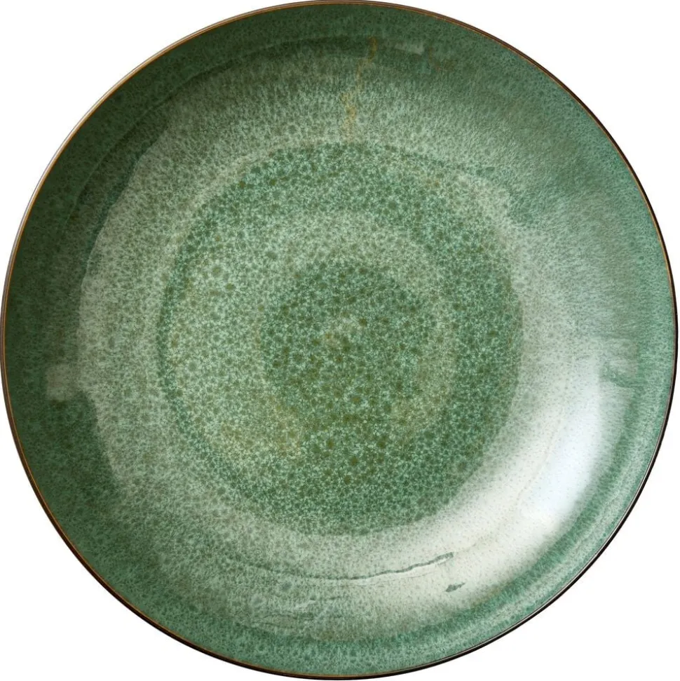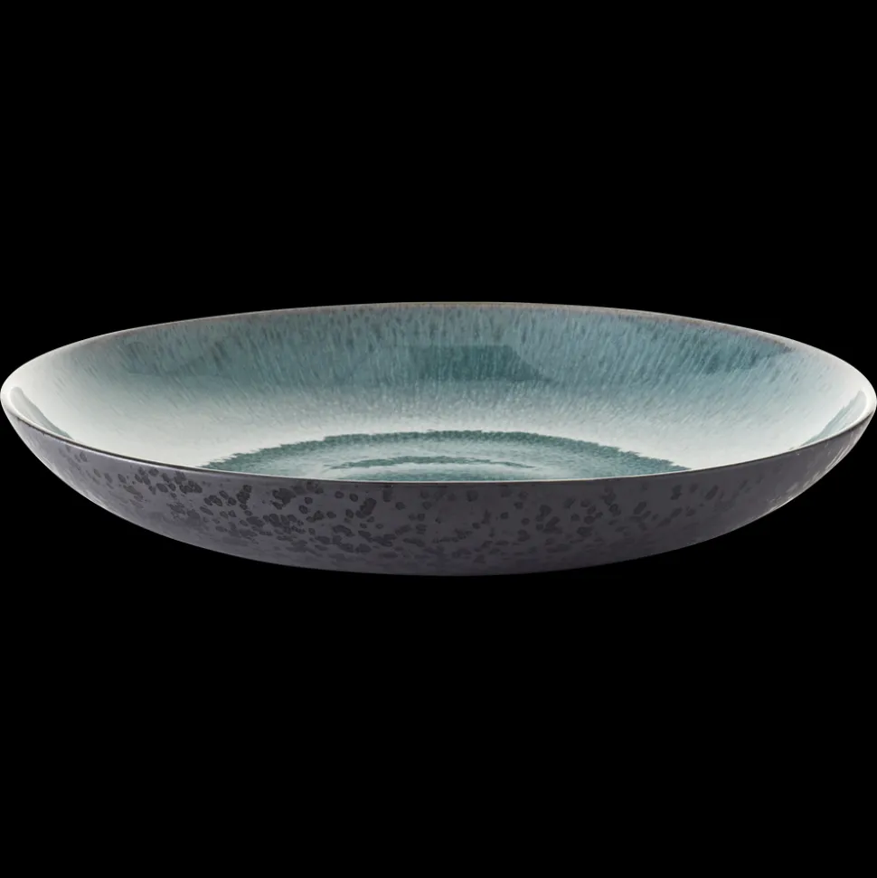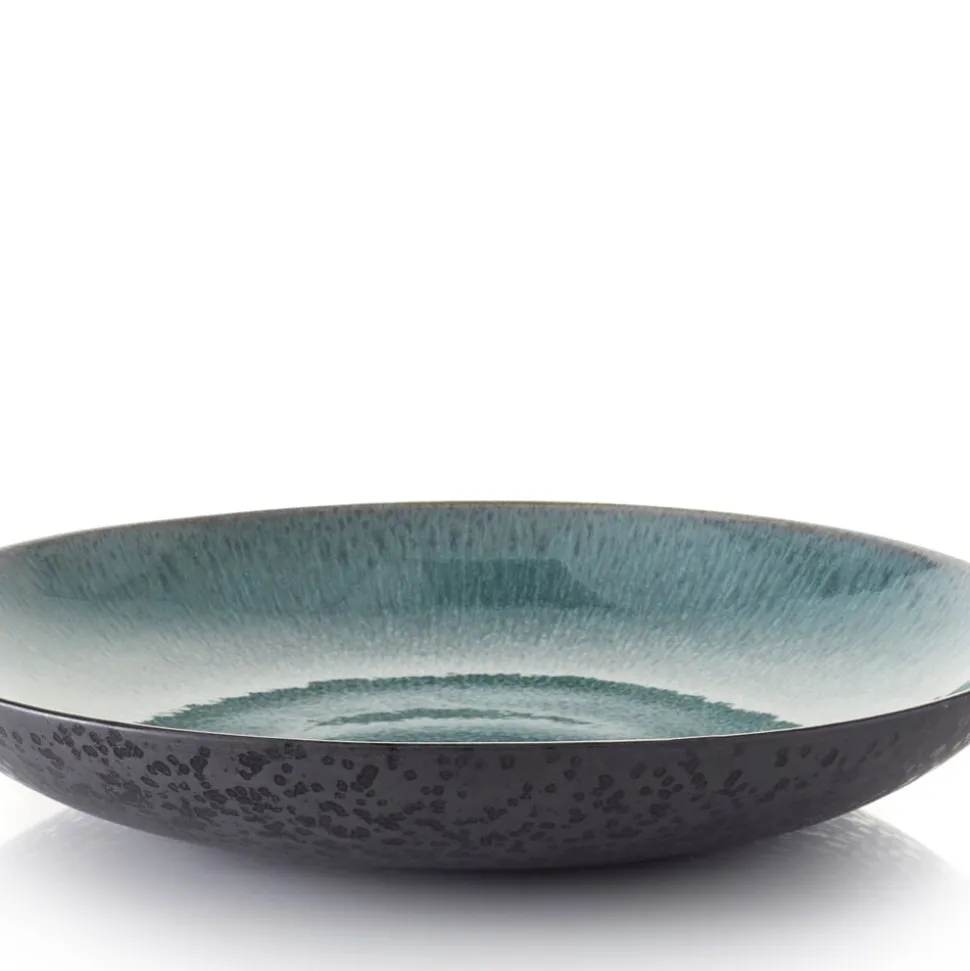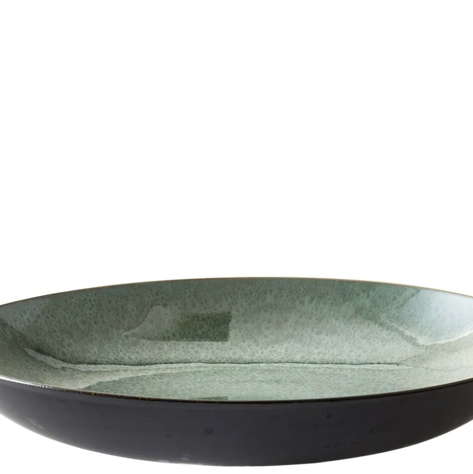 BITZ Fad fremstillet i mat sort/blank grøn stentøj dia. 40 cm.