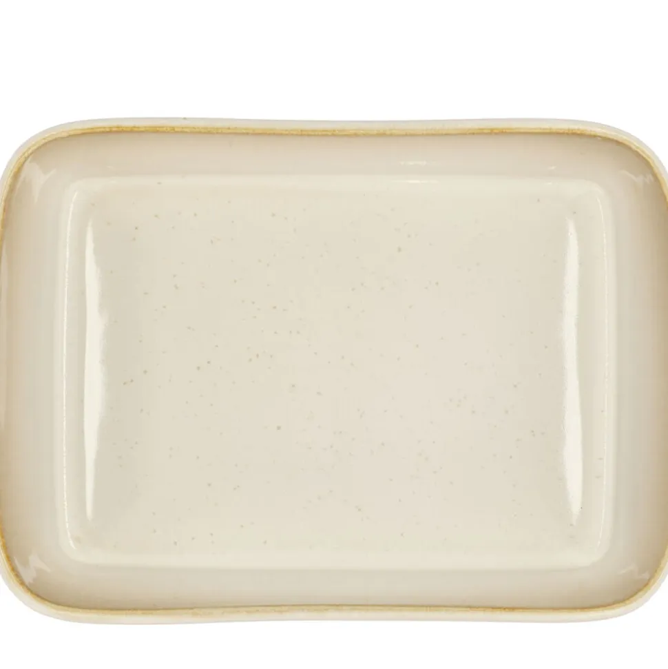 BITZ’ rektangulære fad er fremstillet i robust stentøj med mat cremefarvet yderside og blank cremefarvet inderside. Det måler 21 x 28 cm og er 8 cm højt. Det flotte fad fås i to størrelser og i flere fantastiske farvestillinger med en unik, reaktiv glasur, der fremhæver stentøjets glød.