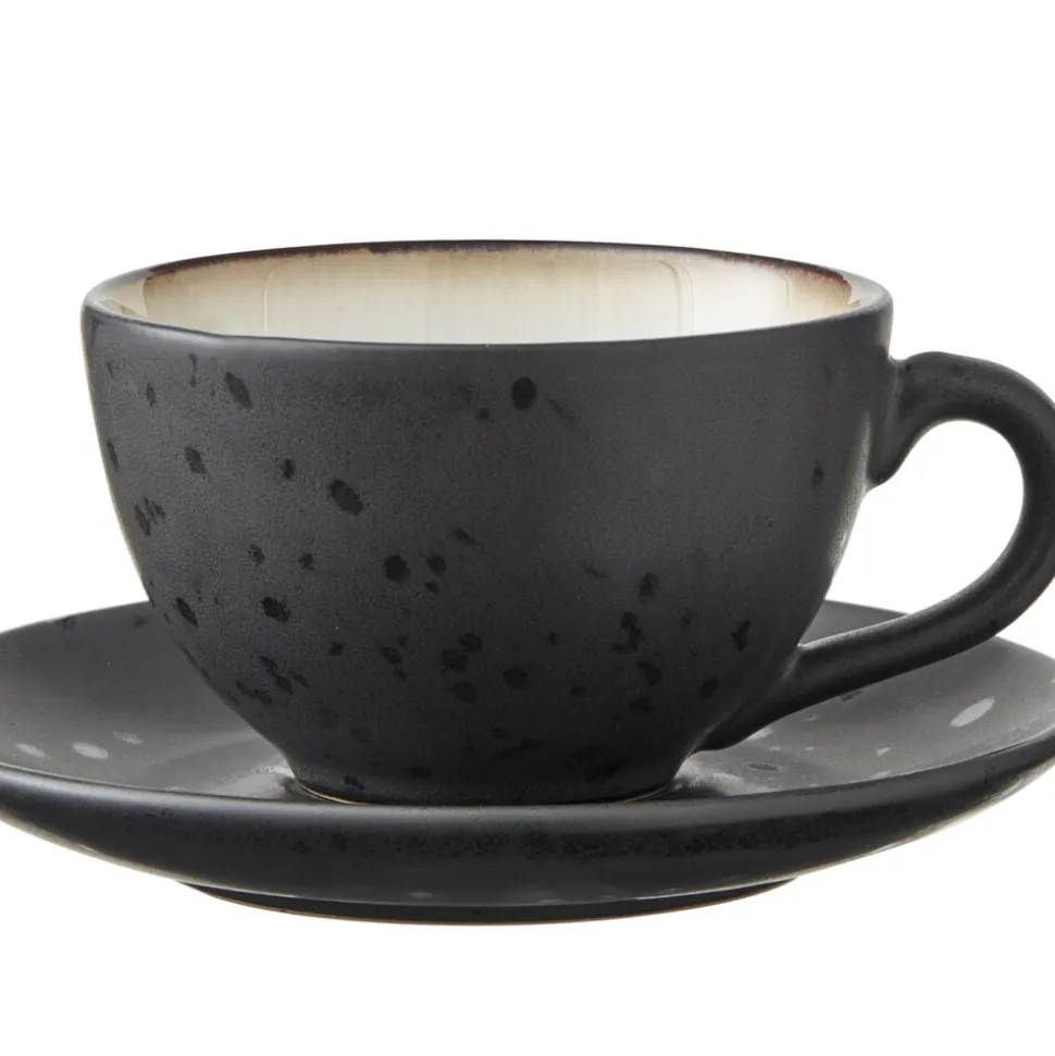 4 stk. Nyd din cappuccino og dine andre kaffefavoritter i den flotte BITZ Kop med underkop. Fremstillet i mat, sort stentøj med blank glasur i amber, lyserød, lilla, creme på koppens inderside. 24 cl, 6 cm høj. Velegnet til maskinopvask, mikroovn og ovn op til 220 gr.