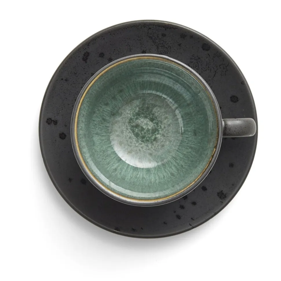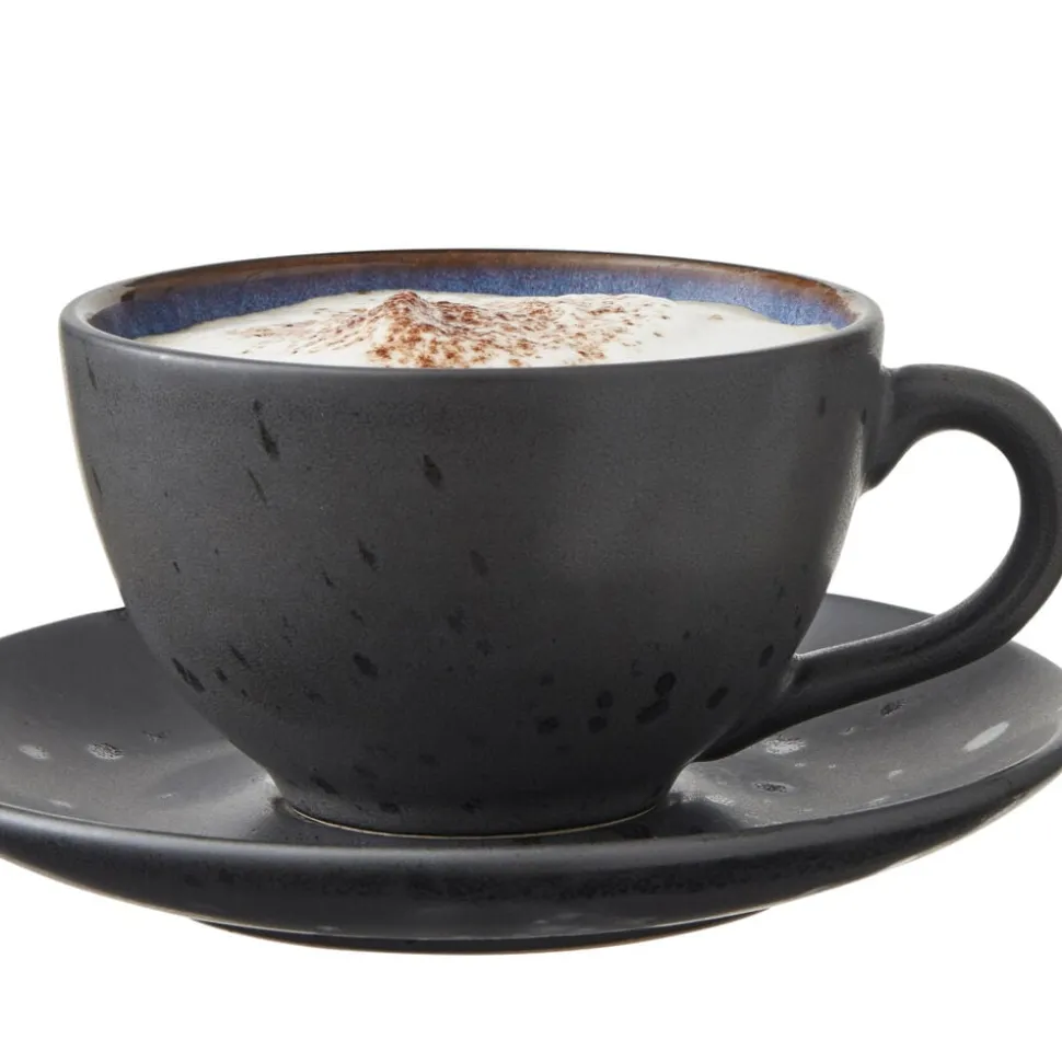 4 stk. Nyd din cappuccino og dine andre kaffefavoritter i den flotte BITZ Kop med underkop. Fremstillet i mat, sort stentøj med blank glasur i grøn, mørkeblå, lyseblå, grå på koppens inderside. 24 cl, 6 cm høj. Velegnet til maskinopvask, mikroovn og ovn op til 220 gr.