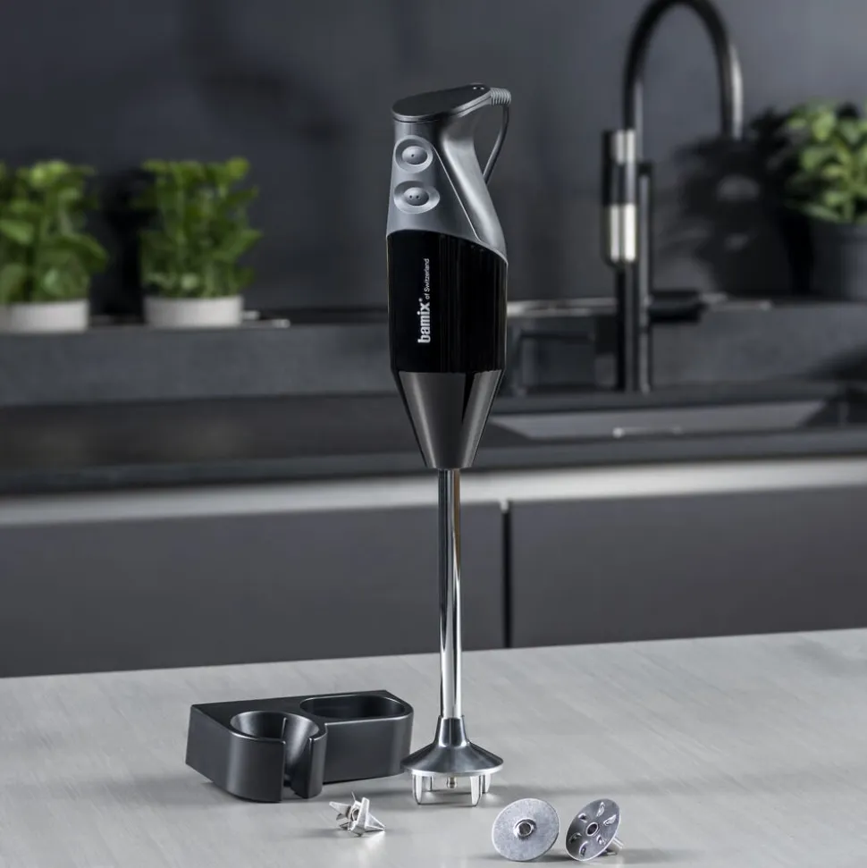 bamix® Gastro Pro-2-stavblender med en kraftig 200 watt motor, der sikrer pålidelig hjælp til selv de hårdeste opgaver i køkkenet. Stavblenderen har to hastighedsindstillinger, softgrip-sikkerhedsknap og en mixerdel på 30 cm, som kan komme under vand, hvilket gør stavblenderen perfekt til professionelle køkkener. Til produktet medfølger multifunktionskniv, blenderskive, piskeskive, vægholder samt en instruktionsmanual. Livstidsgaranti på motor.