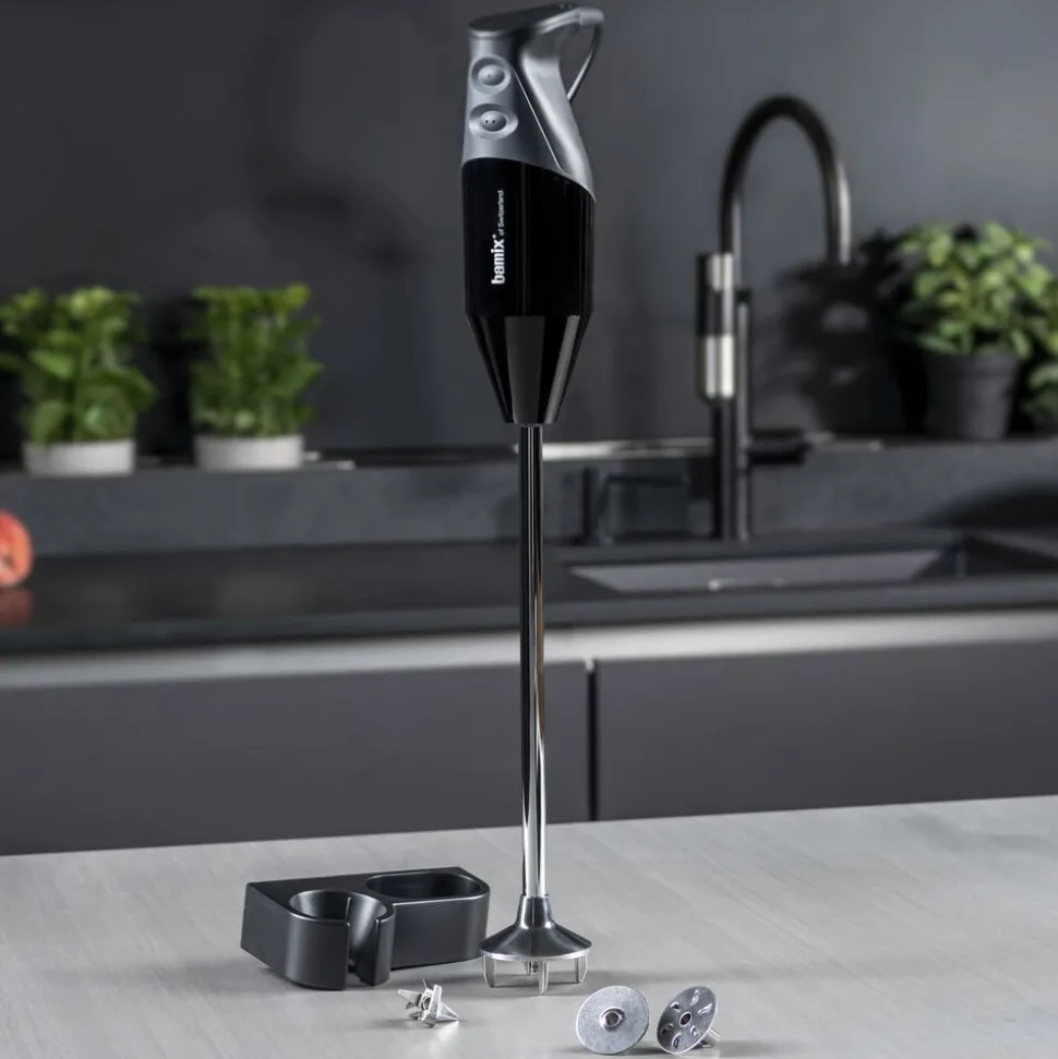 bamix® Gastro Pro-3-stavblender med en kraftig 300 watt motor, der sikrer pålidelig hjælp til selv de hårdeste opgaver i køkkenet. Stavblenderen har to hastighedsindstillinger, softgrip-sikkerhedsknap og en mixerdel på 39 cm, som kan komme under vand, hvilket gør stavblenderen perfekt til professionelle køkkener. Til produktet medfølger multifunktionskniv, blenderskive, piskeskive, vægholder samt en instruktionsmanual. Livstidsgaranti på motor.