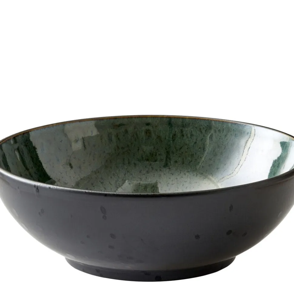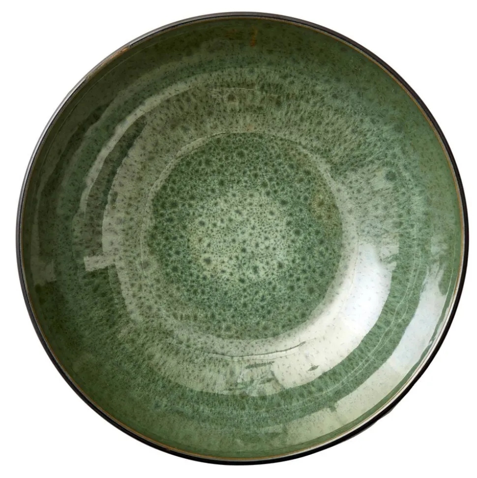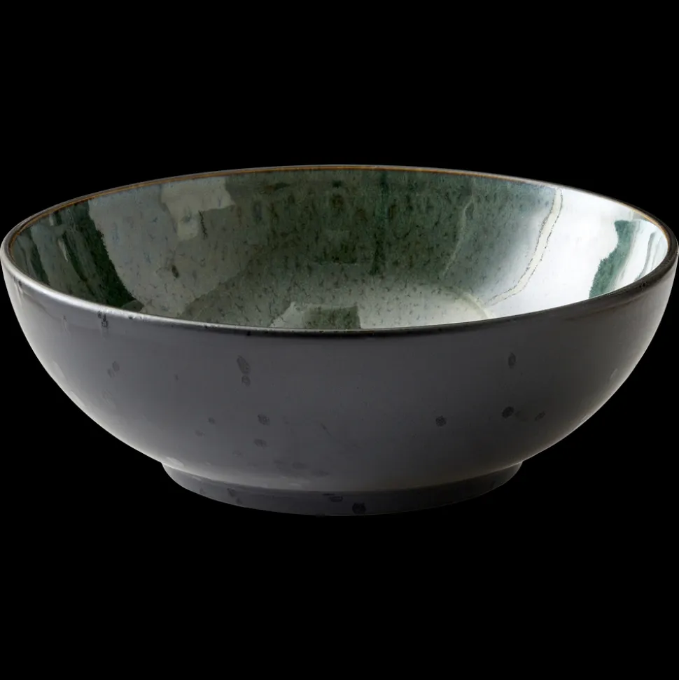 BITZ stor salatskål i sort stentøj med en glansfuld, grøn glasur på indersiden kombineret med mat reaktiv glasur på ydersiden. Skålen er perfekt til store salater og anretninger. Velegnet til opvaskemaskine, mikroovn og ovn op til 220 grader. Dia. 30 cm, højde 10 cm.