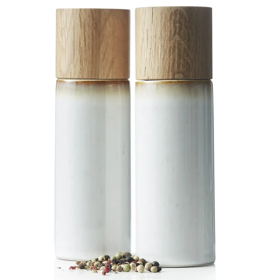 Salt- og peberkværnsæt i blankglaseret stentøj med top i egetræ. Den smukke farve passer til de øvrige produkter i BITZ’ farverige stentøjsserie, hvor den reaktive glasur giver hvert enkelt produkt sit helt unikke spil.