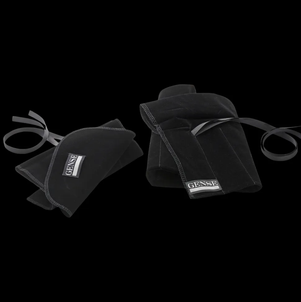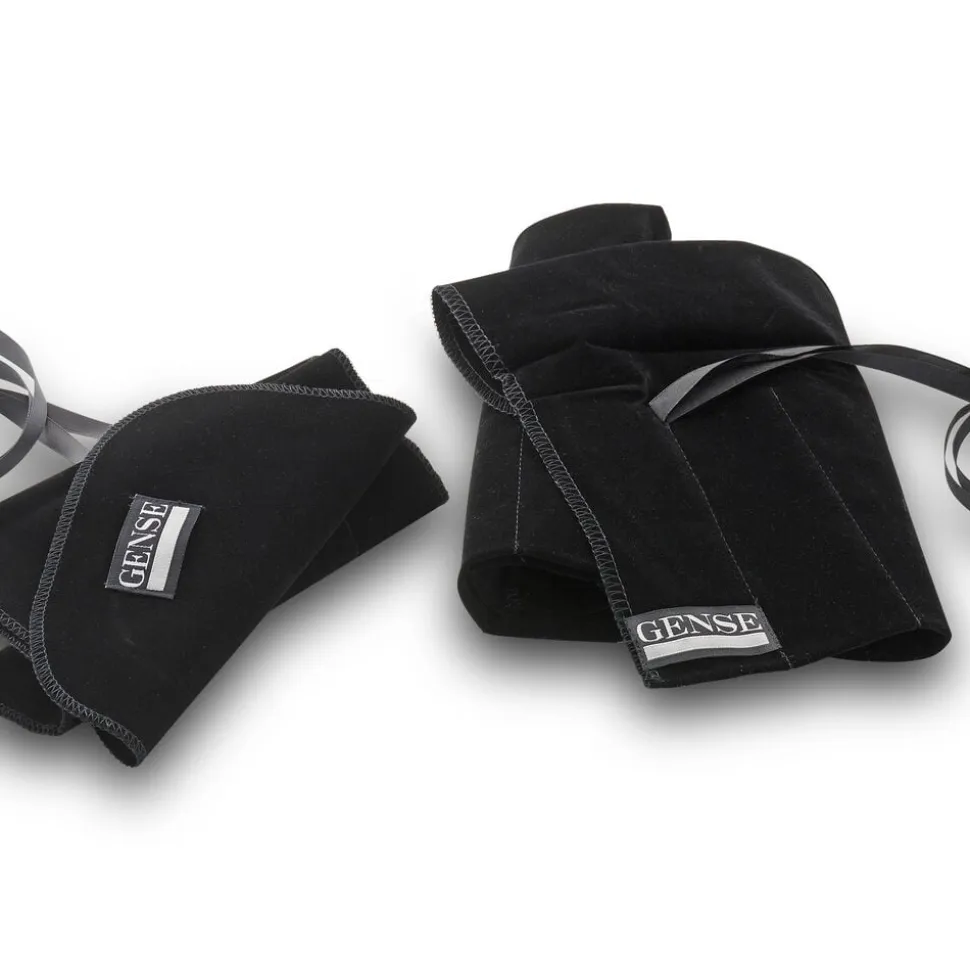 Bestikpose til 12 dele udført i sort kvalitetsklæde med hvidt Gense-logo og sort stofbånd til lukning.