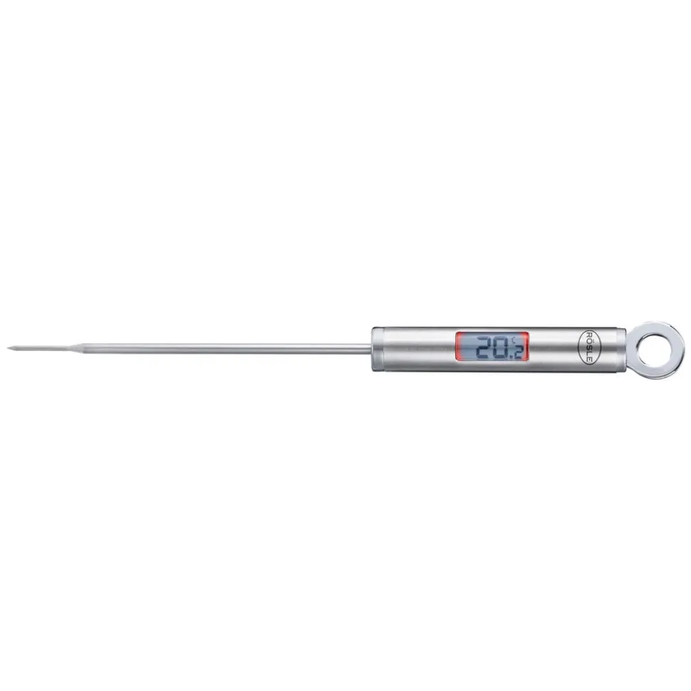 RÖSLE gourmettermometer har et digitalt display, der måler fra -40 °C til +200 °C. Til hurtig og nem måling af temperaturen i mange forskellige fødevarer – lige fra stegen til babymad, vin eller te. Tåler ikke opvaskemaskine. Bruger 2 x LR44 knapcellebatterier (medfølger ikke).
