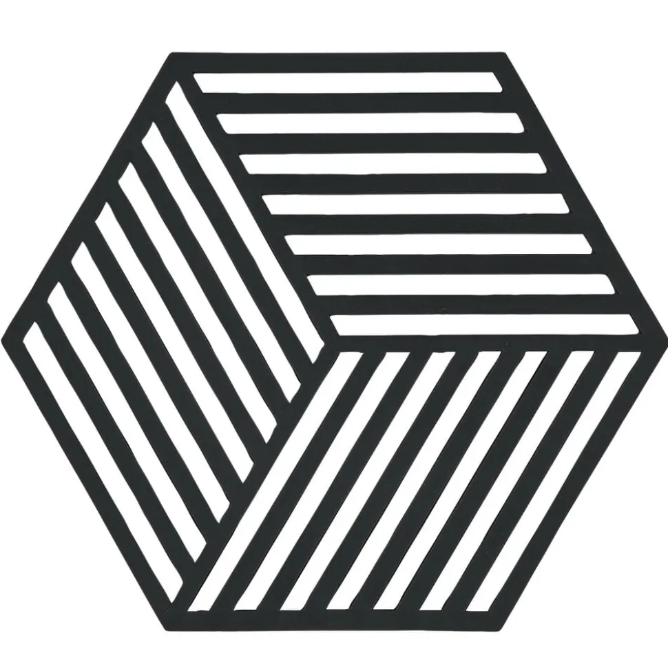 Hexagon bordskånerne i silikone er så grafisk dekorative, at de indbyder til at lægge en flok ud i hele bordets længde uden at stille noget på dem. De er varmebestandige op til 250 °C og kan vaskes i opvaskemaskine. 16 x 14 x 0,9 cm.
