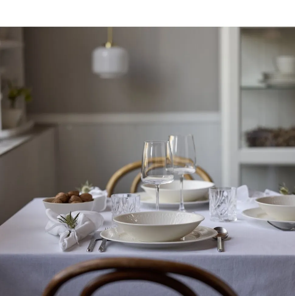 Der er noget særligt ved den danske vestkyst. Inspireret af marehalmens spidse strå har Steffensen & Würtz designet et minimalistisk mønster til stellet, der gengiver de karakteristiske strukturer i smuk harmoni. Designet fanger den dybde og tekstur, der opstår i marehalmens tætte klynger langs kysten. Horizon er et porcelænsstel, der indfanger kystens skønhed og skaber en indbydende stemning ved bordet. Stellets dele føles lette, slidstærke og er skabt til daglig brug. Nyd stellet igen og igen – til både hverdagsmåltider og hyggelige middage.