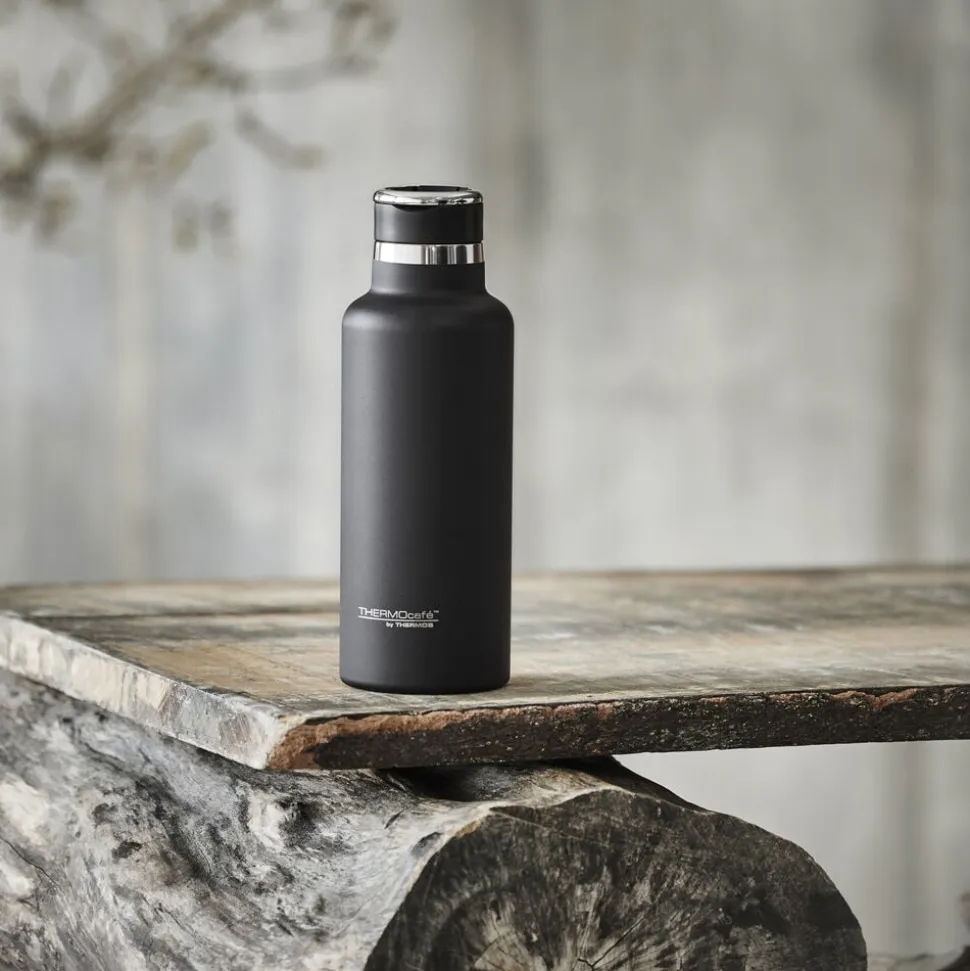 Thermos Hydration 600 ml termoflaske holder dig hydreret, når du er på farten. Fremstillet af rustfrit stål og med vakuumisolering, som holder dine drikkevarer kølige – perfekt til både travle dage og udflugter. Termoflasken holder helt tæt, så du kan trygt tage den med dig uden bekymring. Låget har et praktisk håndtag og et sugerør, der nemt kan vippes op og ned.