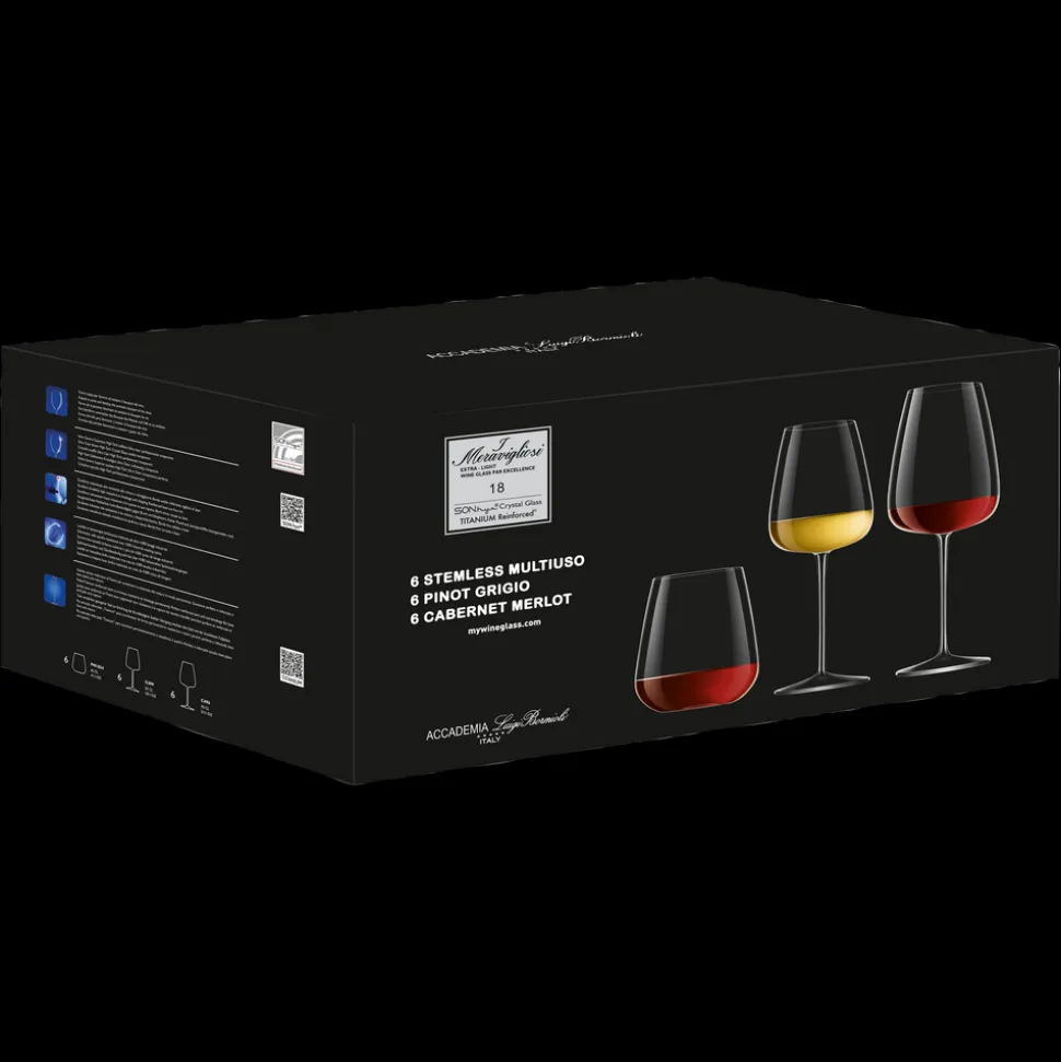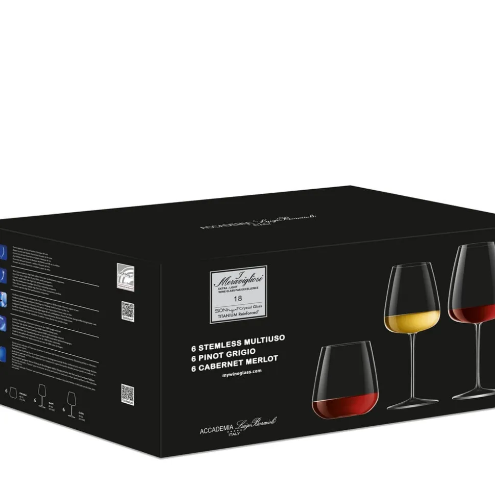 Luigi Bormiolis elegante serie I Meravigliosi – De vidunderlige – indeholder en række lette og velafbalancerede glas til vin og bar. Glasset er holdbart krystalinglas med fyldig og kraftfuld klang. Det er ultraklart og holder sig glansfuldt og transparent i mange år Den tynde og elegante stilk er forstærket med titanium. Kan vaskes i opvaskemaskine, og vi anbefaler et vaskeprogram på maks. 55 grader.