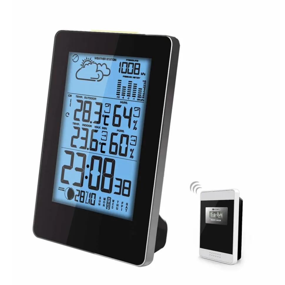Trådløs vejrstation med termometer og hygrometer, inde og ude.