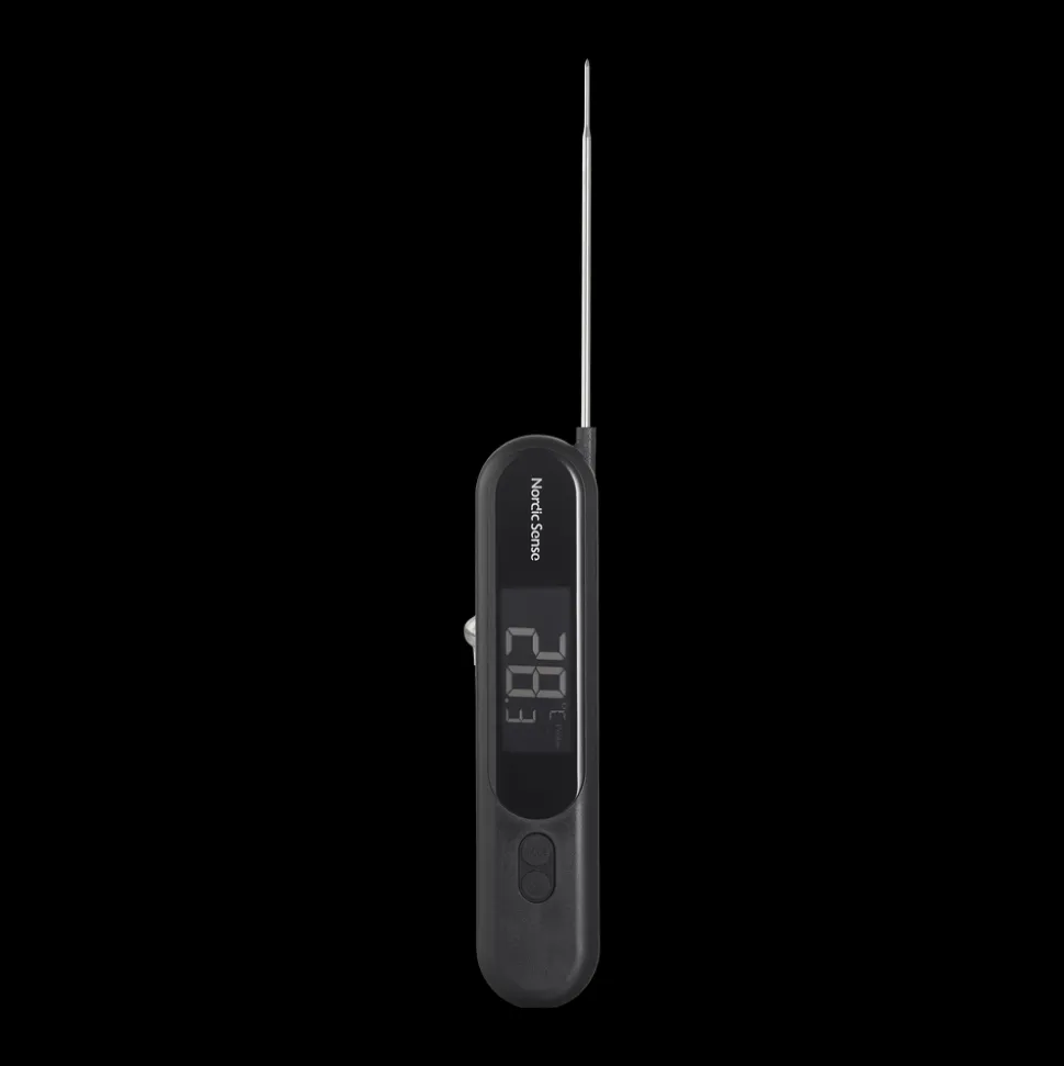 Kombineret termometer til infrarød måling og indstiksmåling. Infrarød måling er velegnet til berøringsfri måling af overfladetemperaturen på stegepanden, smeltet chokolade og lignende, og med spyddet kan du fx måle kernetemperaturen i din steg.