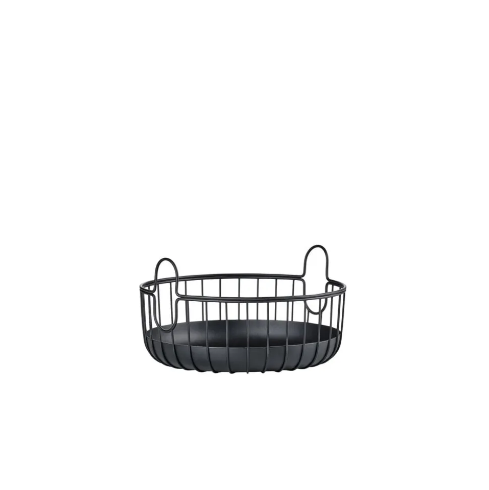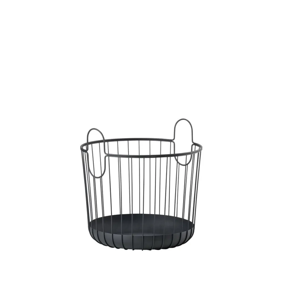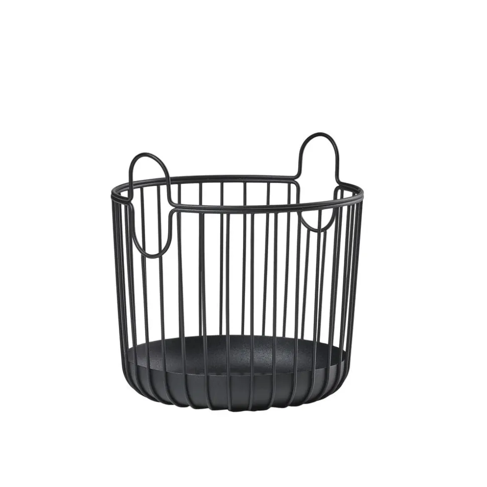 Flot metalkurv til håndklæder eller vasketøj i badeværelset, puder, tæpper og magasiner i stuen – eller til store grønne planter overalt i boligen. Kurvene fås i to størrelser, som kan stables. Det er lækkert interiør, som giver øjet ro.
